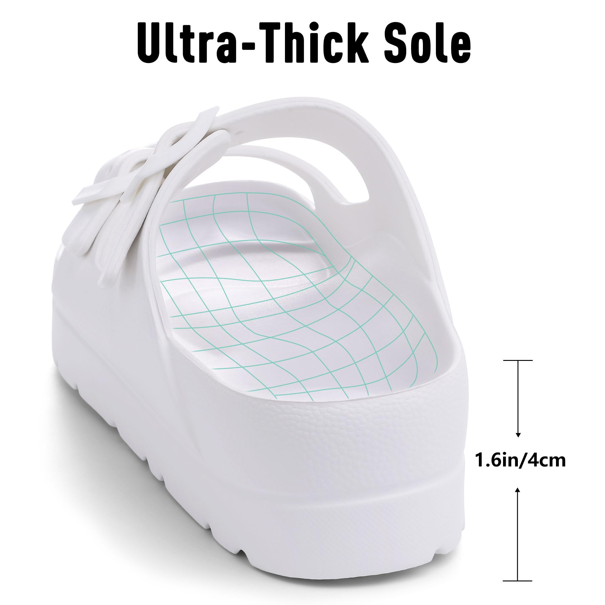 【Excellent Cushioning】1.6 inch supper thick sole is made of premium and durable EVA material, bouncy slightly rubbery feel, enhancing stable and cushioning performance, just like walking on clouds or marshmallows.