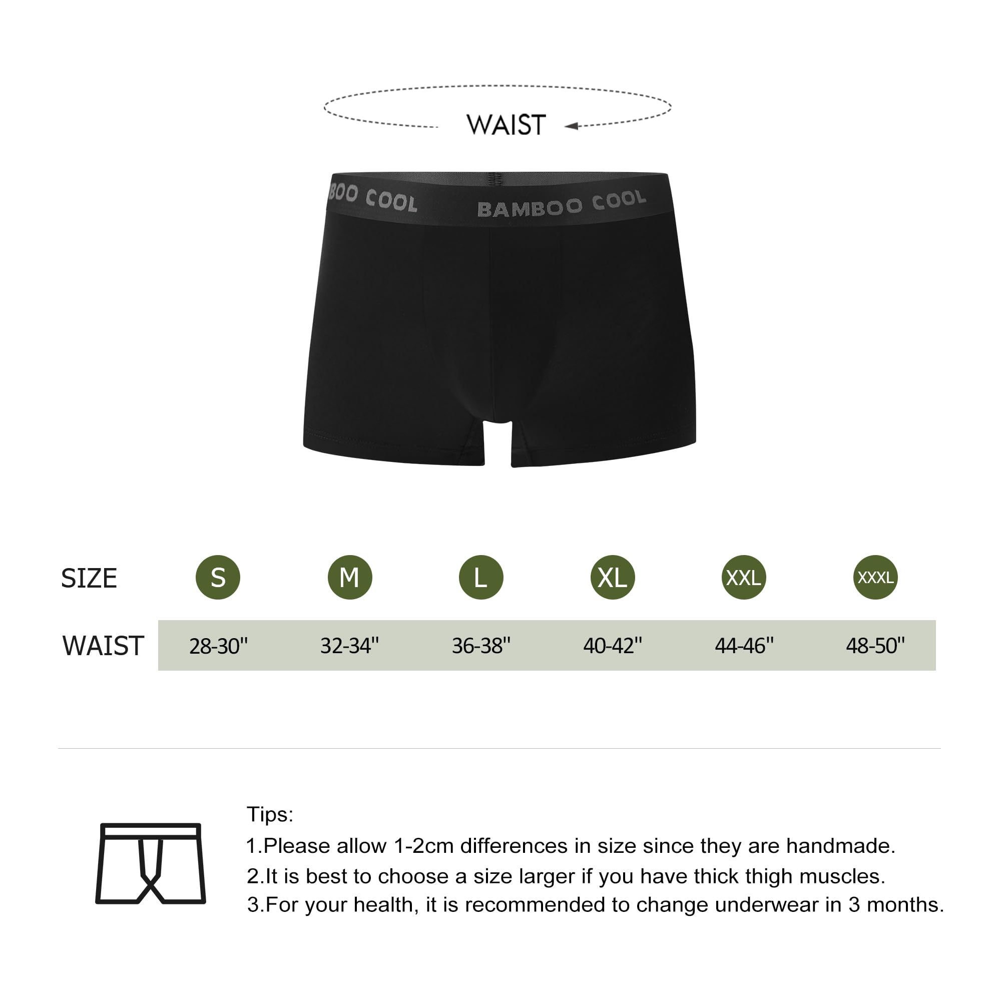 PREMIUM MATERIAL: 92% Viscose Made From Bamboo and 8% Spandex,light and soft texture.It is 30% more breathable than cotton underwear and the average body temperature is 3°lower than cotton ones,bringing a fresh touch to your skin
