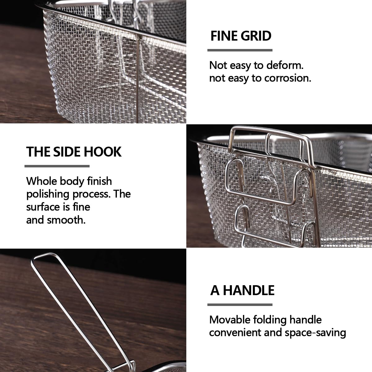 Drain Basket Size: This Stainless Steel Deep Fry Basket is ideal for kitchen cooking, outdoor camping, and restaurant frying. It measures 12.7 x 7.7 x 3.1 inches, making it a regular-sized basket that can meet daily use. Its sturdy construction and durable material ensure that it can withstand frequent use and last for a long time.