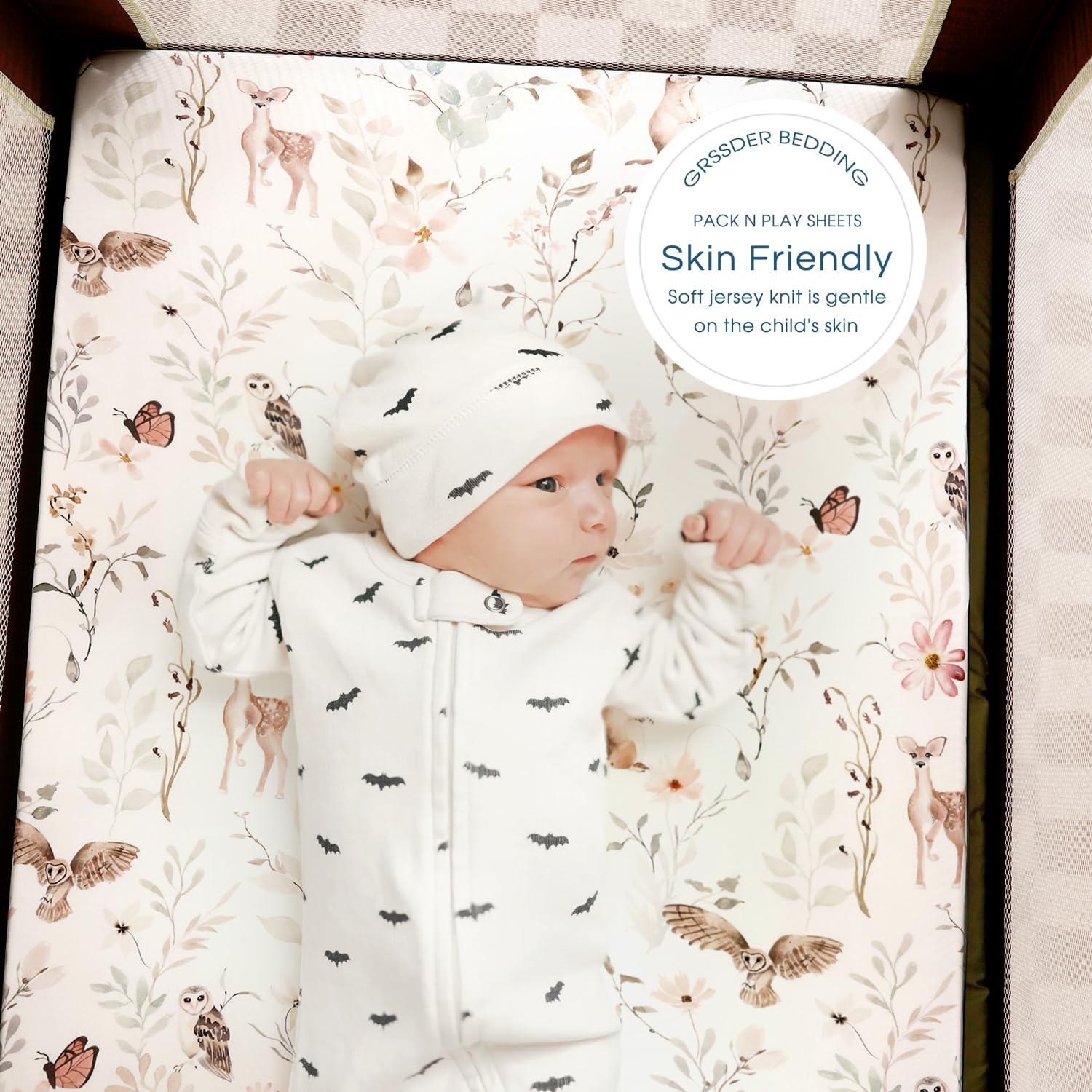 Ultra Soft & 4-way Stretch: Made of extra soft stretchy jersey knit fabric. GRSSDER mini crib sheets offer a breathable, sweat-absorbent tee shirt like feel for exceptional comfort, providing your little ones a safe and to stay in place throughout the day.