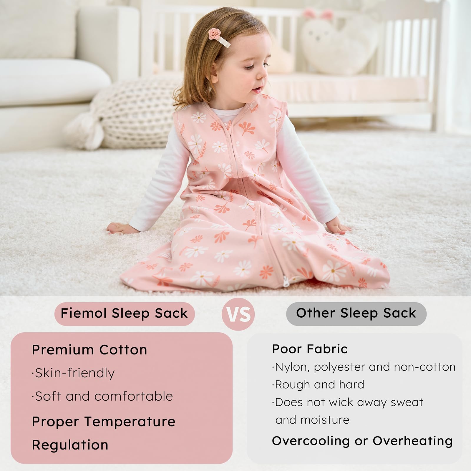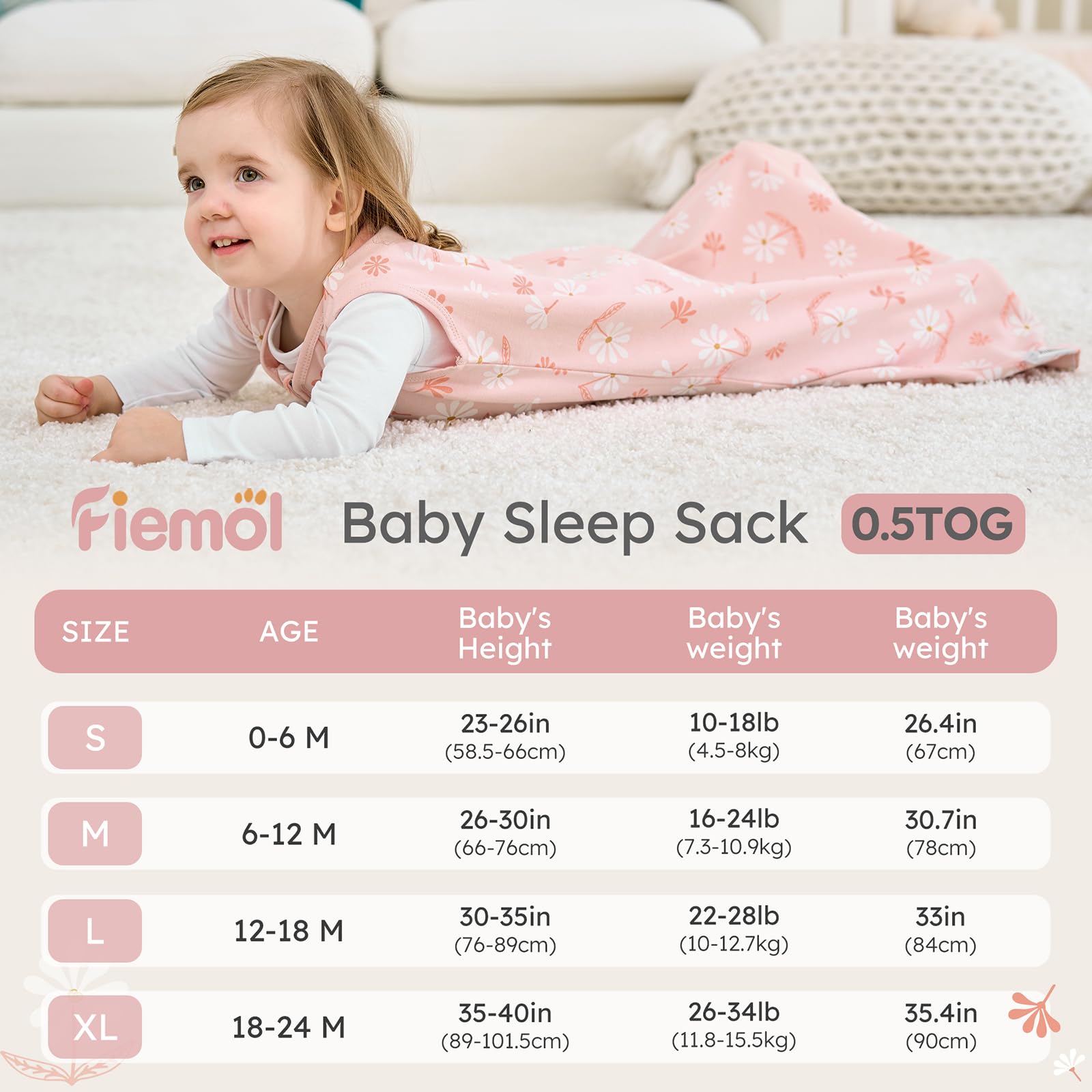 100% Cotton: Made from 100% cotton, our baby sleep sack applys top 10% of the premium cotton, which is more breathable and soft on delicate skin. 0.5 tog fit for moderate seasons. With this wearable blanket, your baby would neither get sweaty nor catch a cold.