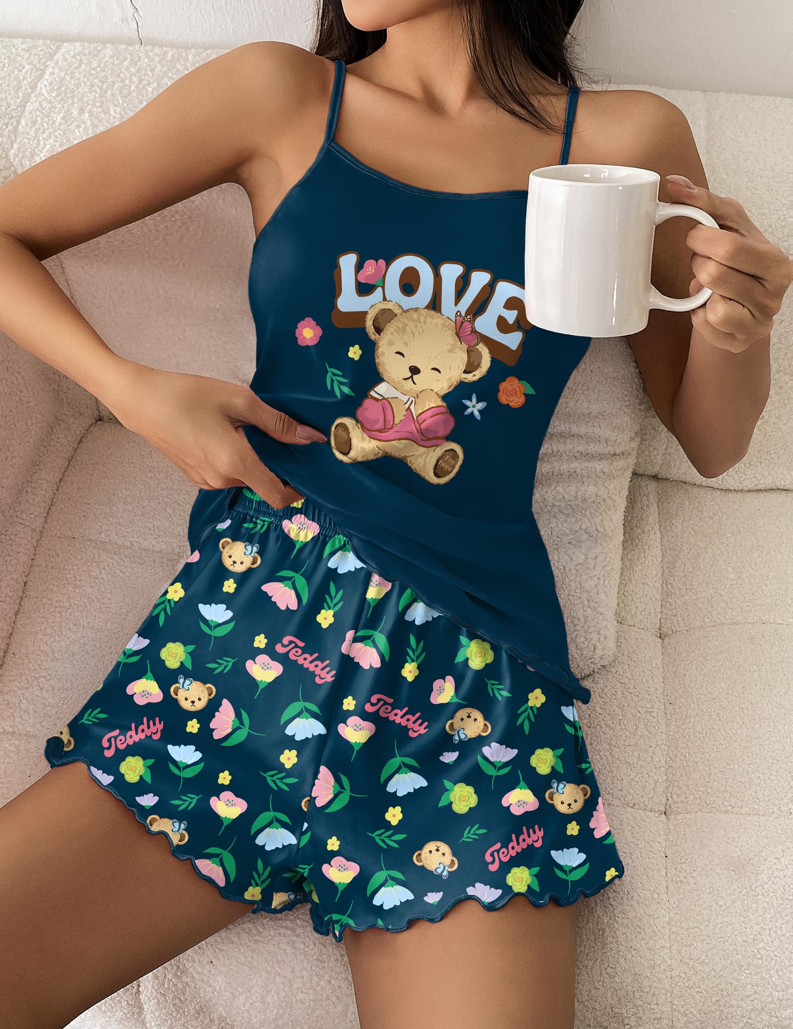Comfy Material: Ekouaer Cami Shorts Set is made of 95% Polyester and 5% Spandex, skin-friendly and light weight. High-quality fabric is wear-resistant and not easy to fade