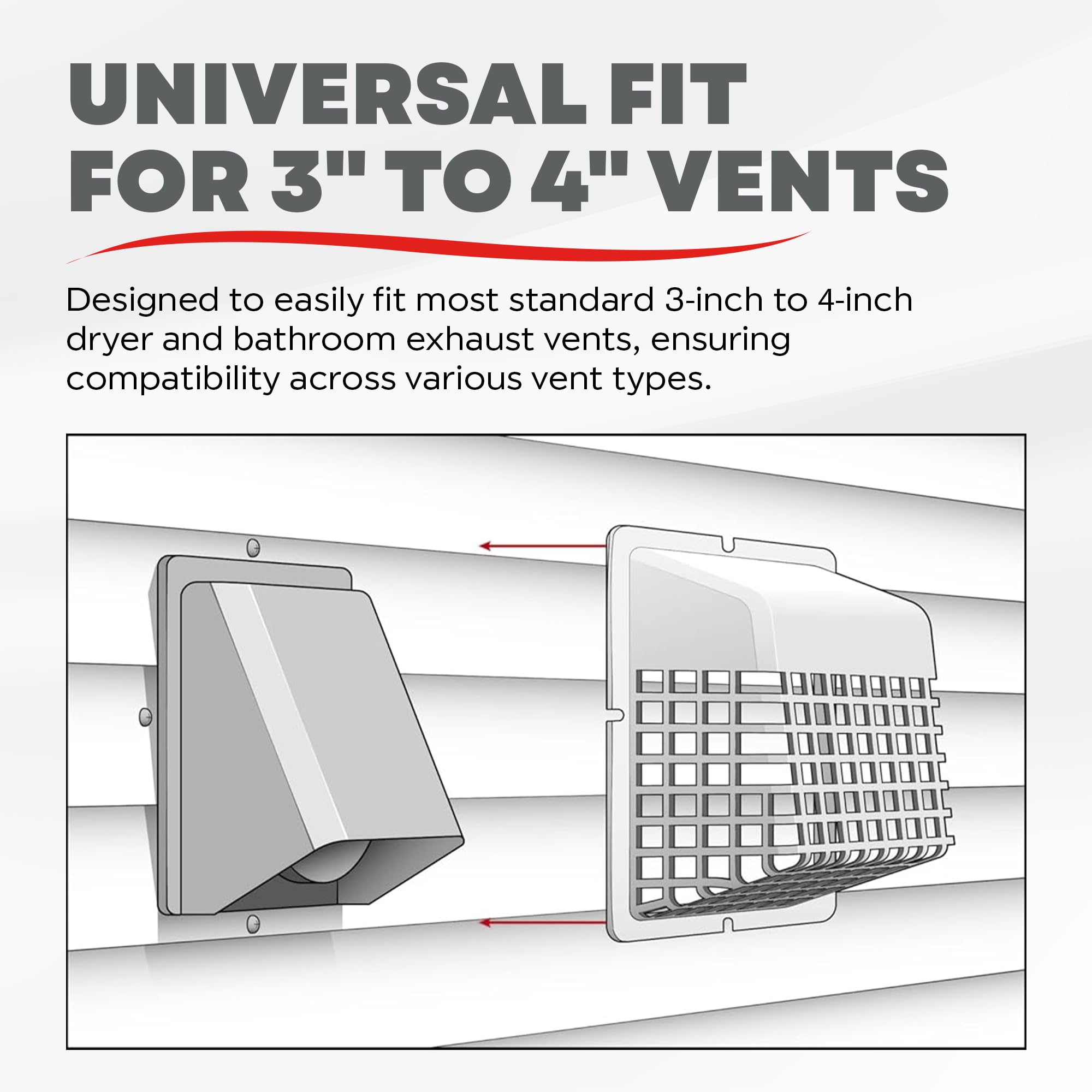 UNIVERSAL FIT: Designed to fit standard vent hoods, this vent guard installs effortlessly over any 3 inch or 4 inch clothes dryer or exhaust vent, offering a versatile and reliable solution for a variety of settings. Whether for residential or commercial use, itβs a practical addition to any ventilation system.