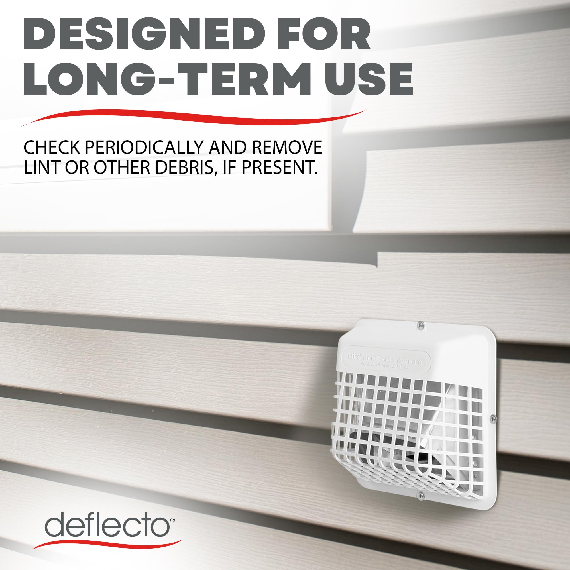 Product Description This universal vent guard offers a quick and simple solution for protecting your homeβs exhaust system. Easily installs over any 3 inch or 4 inch dryer or bathroom vent without the need for special tools (just need a screwdriver) to install or professional help, making it ideal for both new setups and retrofitting existing vents. Its premium plastic construction withstands harsh weather, ensuring durability against rain, snow, and extreme sun while allowing proper airflow. The guard effectively prevents birds from nesting and rodents from entering, reducing the risk of costly blockages and damage. Regular maintenance is a breezeβjust check for debris to keep your system running efficiently, ensuring long-term performance. From the Manufacturer Deflecto Ubgwl Universal Bird Guard; Prevents Birds From Nesting In Duct; Fits Any 3 inches Or 4 inches Exterior Exhaust Hood