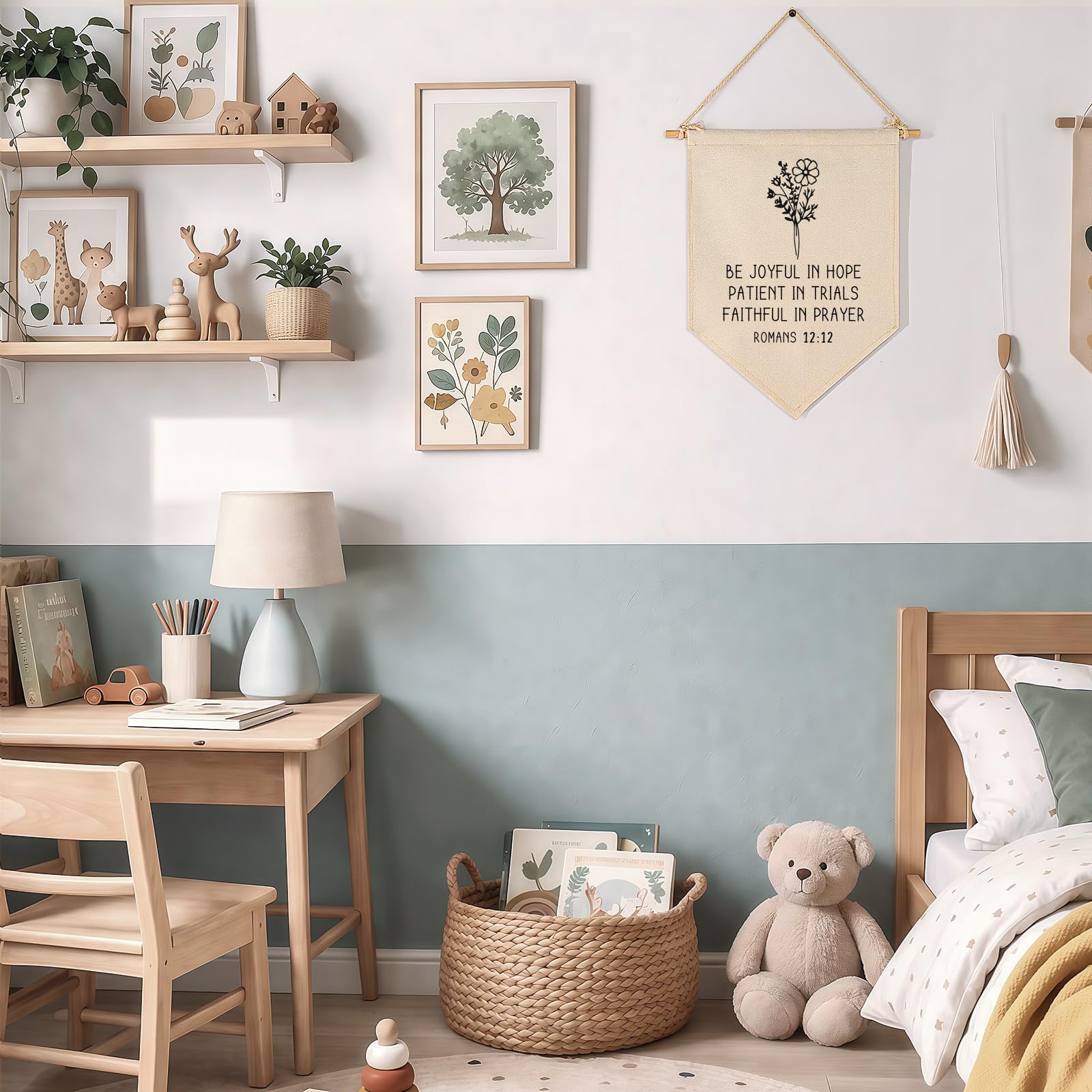 Crafted from natural cotton canvas, this 15.4 x 11 inch nursery wall banner brings a soft and calming touch to baby room, above crib or toddler space. The durable fabric keeps its shape with a natural texture, while the clear print stays bright with everyday use. Lightweight and easy to hang, it comes with a wooden dowel and pre-tied twine for quick setup on walls, doors or shelves. The versatile size fits small spaces without feeling crowded, making it perfect for creating a cozy nursery atmosphere. A thoughtful gift for baby showers, newborn arrival or first birthday.