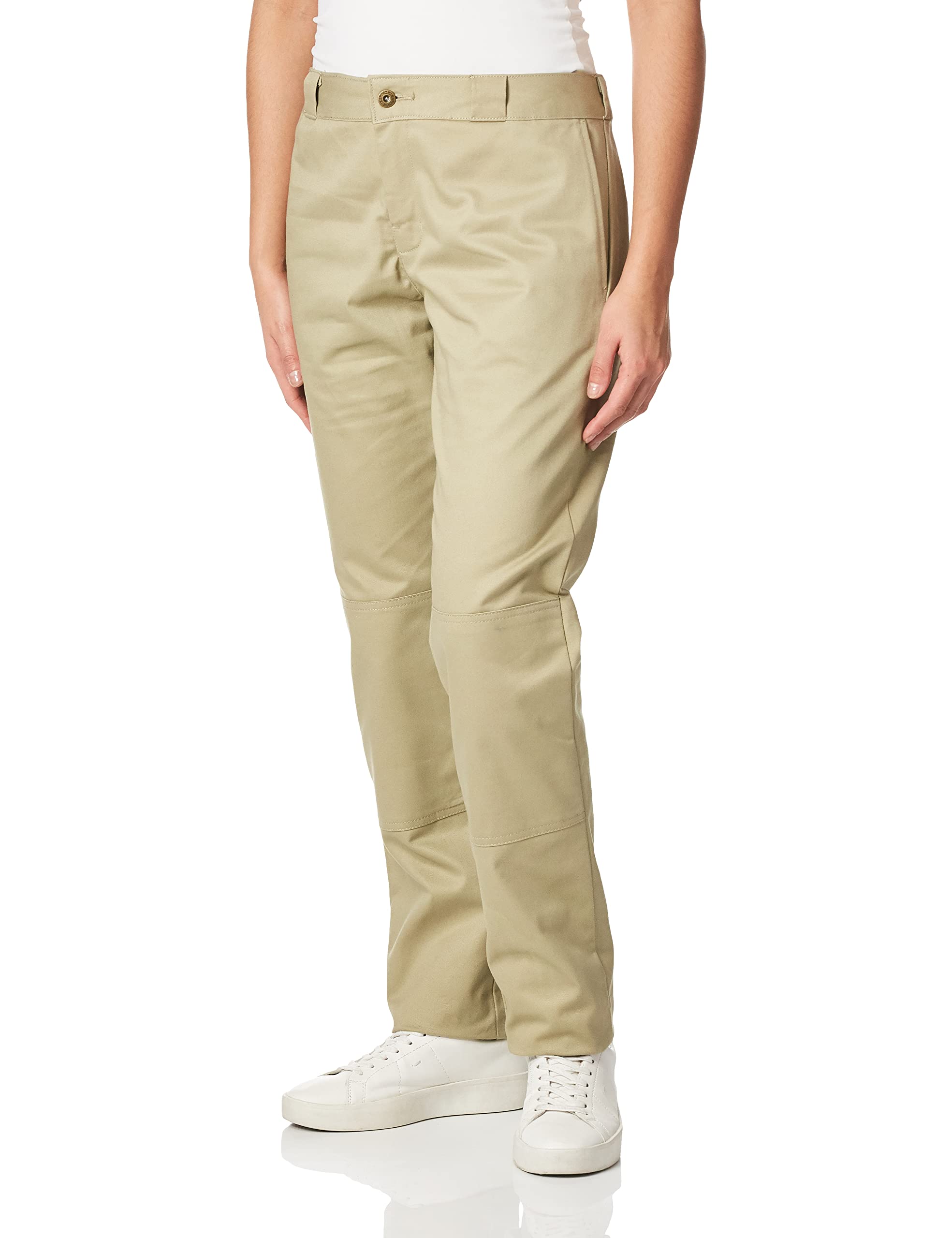 Description Dickies' women's double knee pants provide added protection without sacrificing performance. Sitting just below the waist, these pants feature flex fabric for easy movement and comfort. The stain-release and wrinkle-resistant technologies keep you looking professional, while the double knees and multi-use pockets keep them functional and up for anything.