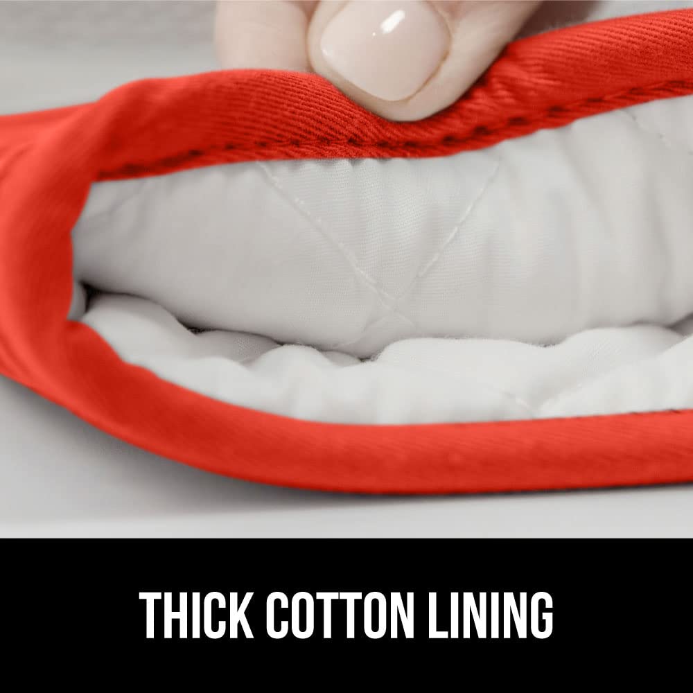 THICK COTTON LINING THROUGHOUT: stay comfortable while you cook; soft cotton lining offers additional protection and comfort, and feel simply amazing; plus, silicone is flexible and conforms easily to your unique grip