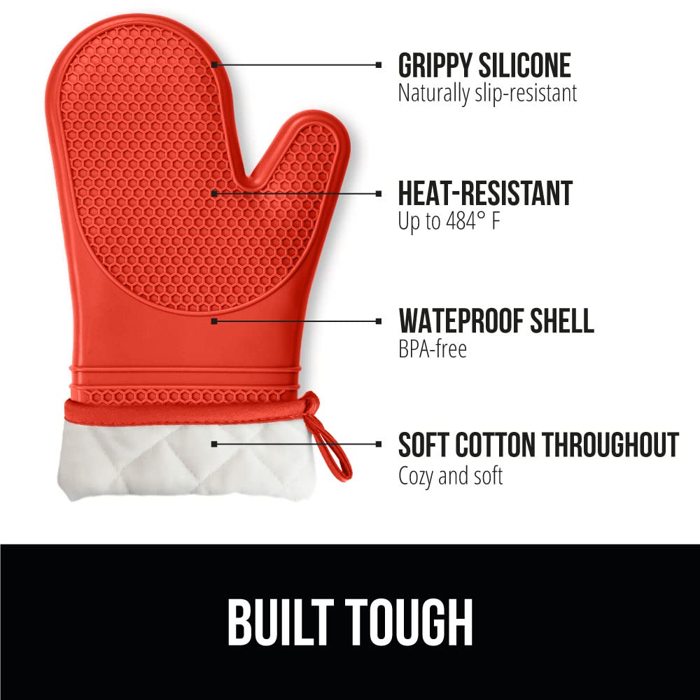WATERPROOF AND STAIN RESISTANT: no more constantly stained oven mitts; Gorilla Grip Silicone Mitts are both stain resistant and waterproof; spills can easily and instantly be rinsed away under water; hot liquids won’t soak through and scald your skin as they would with other materials