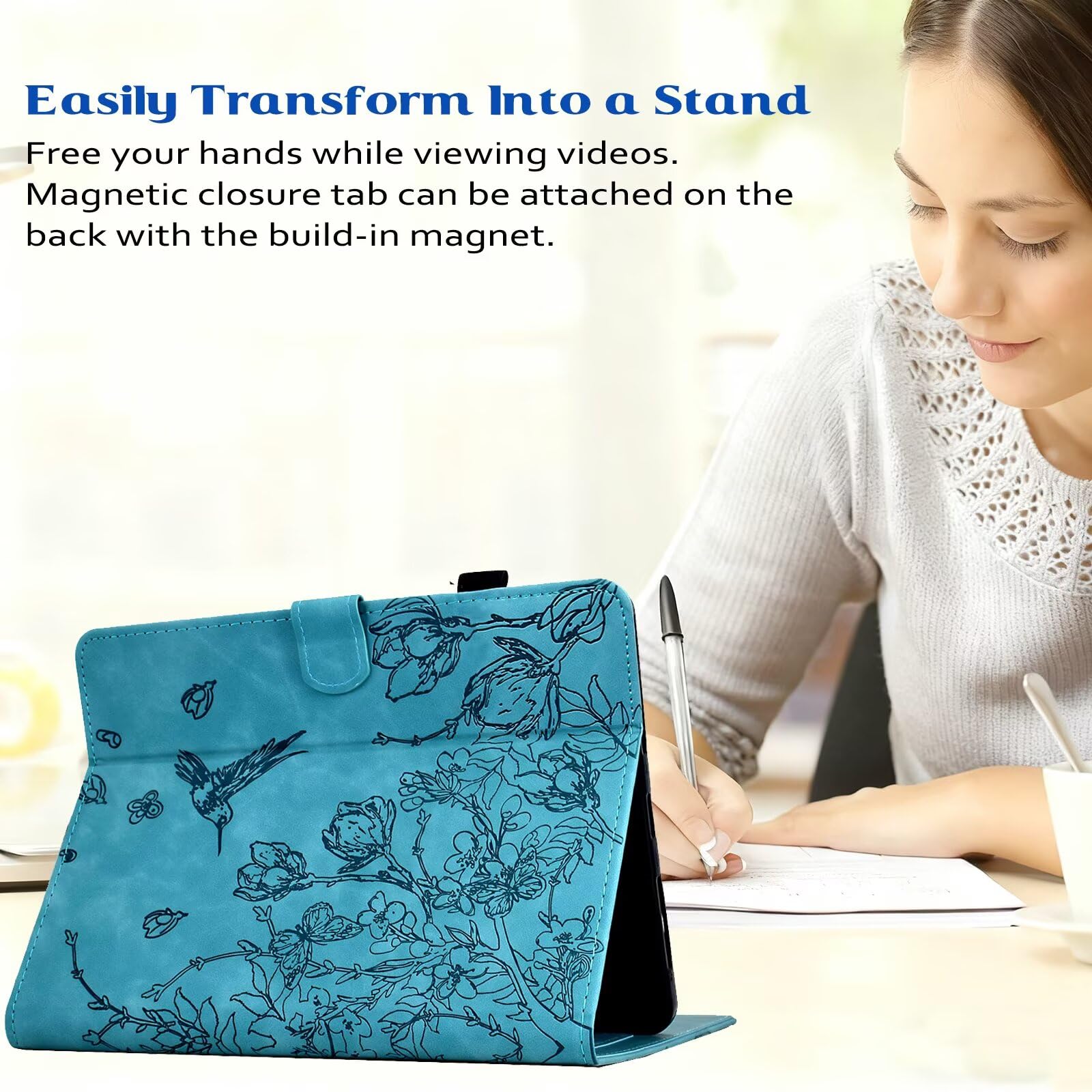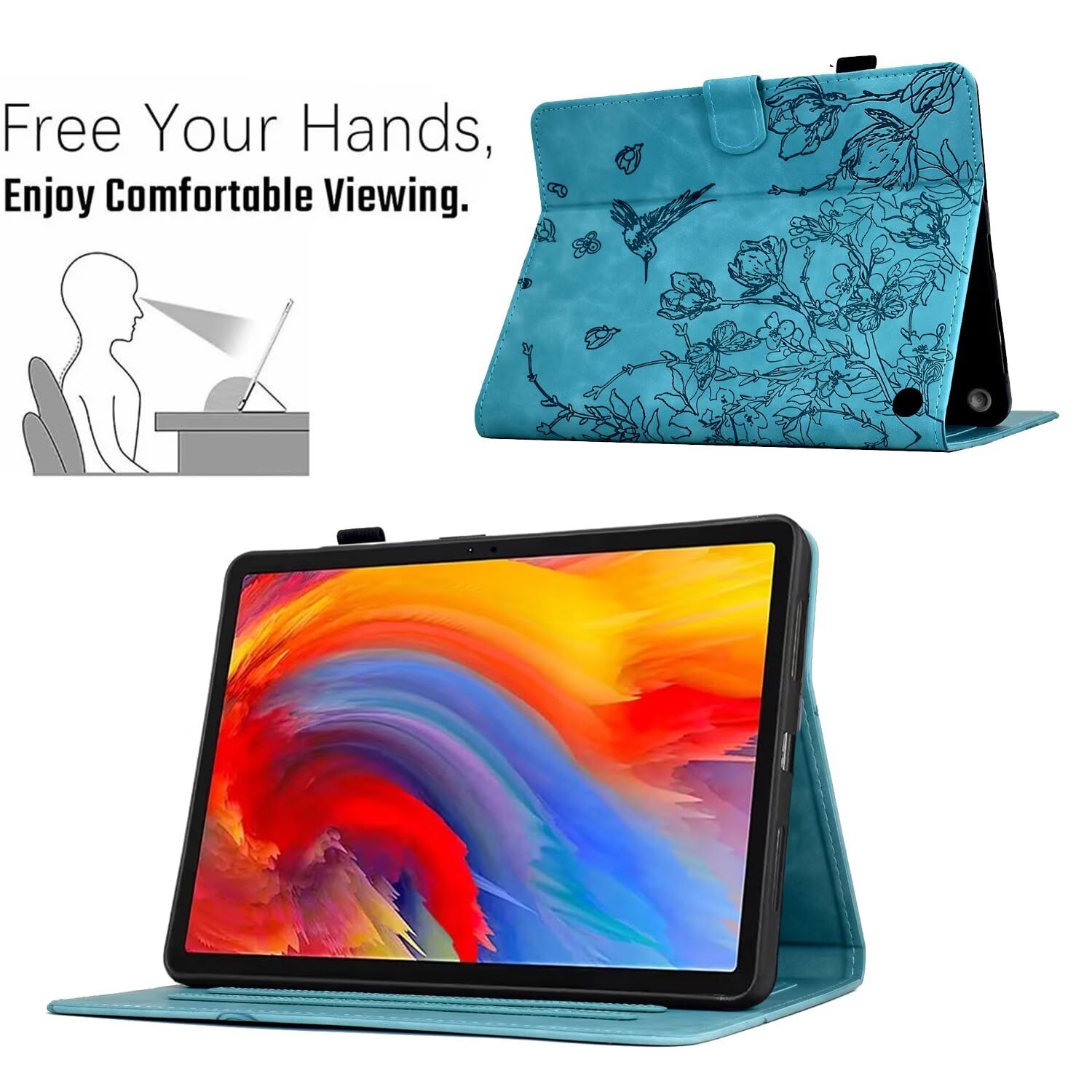 Humanized Design: The case has a built-in stand and two anti-skid strips for allowing the tablet to be propped up in a horizontal position, enabling hands-free viewing for watching videos, reading, or video chatting. The stand design may offer multiple angles for optimal viewing comfort