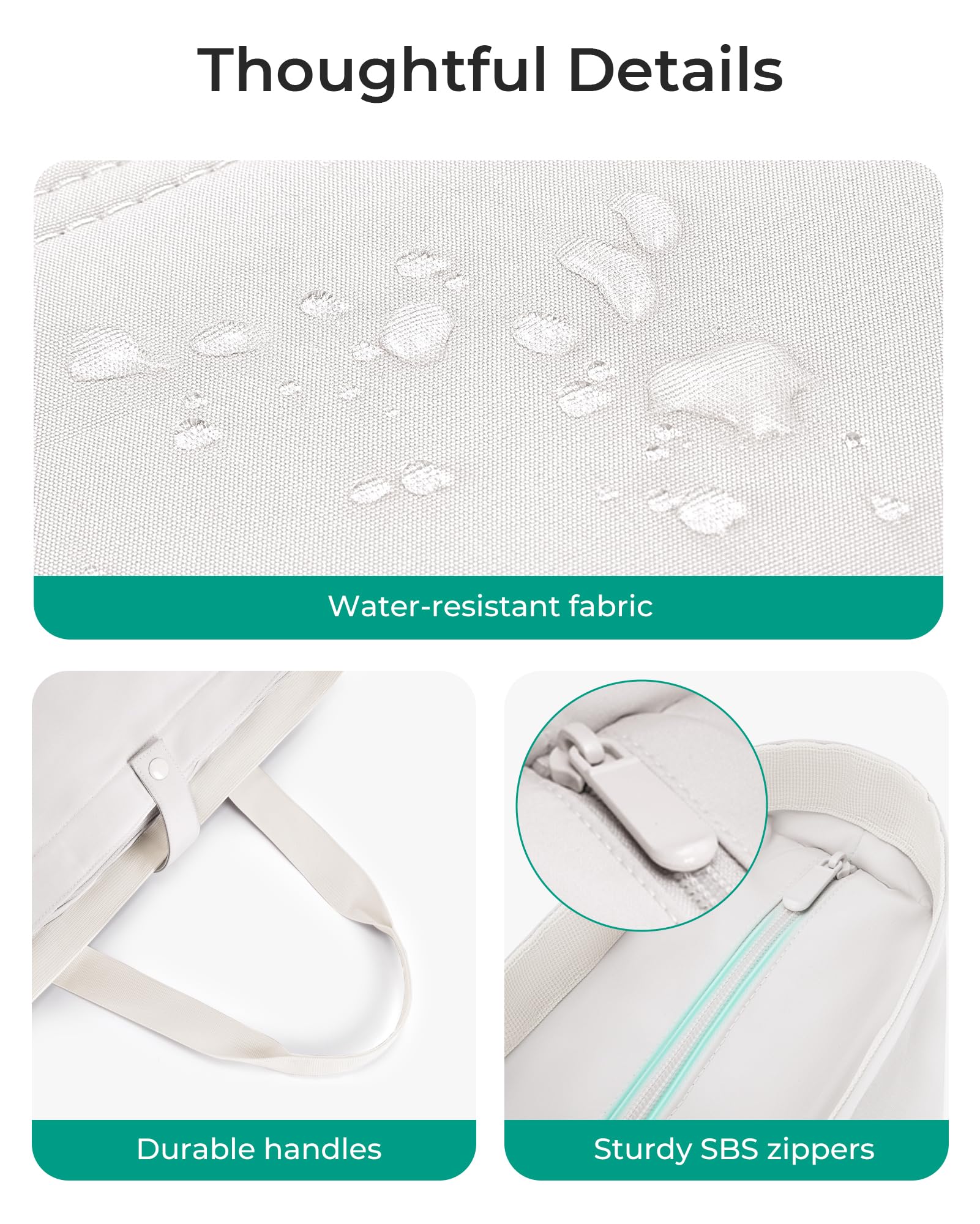 Durable Material: made of water-repellent and tear-resistant fabric. No need to worry about any ripping or tearing on the way. It has strong anti-wrinkle properties and quickly returns to flatness after being folded and opened again.