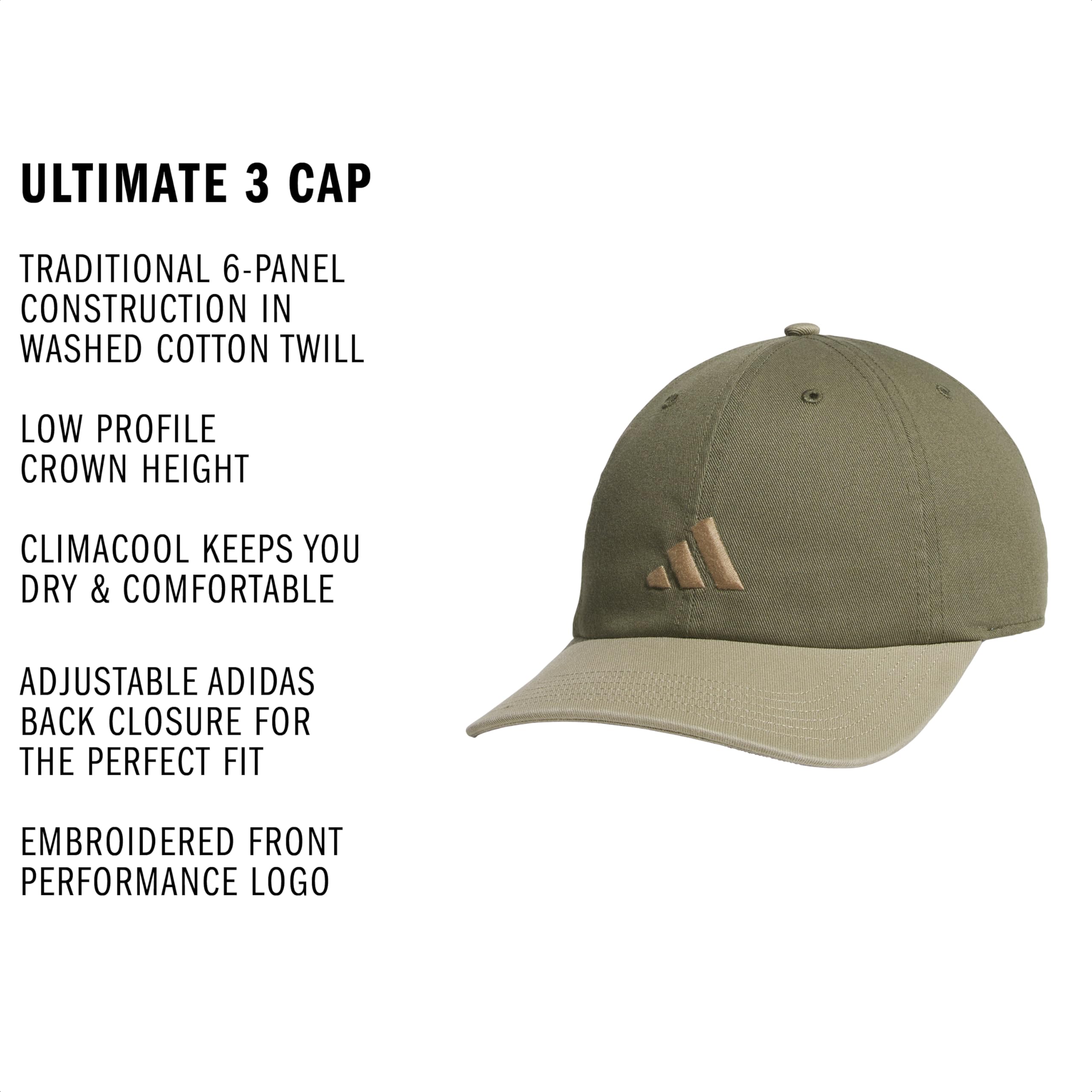 Description If you're after a traditional six-panel cap made from durable cotton twill with a pre-curved brim, you've found it. This men's ultimate everyday cap is great for keeping the sun out of your eyes and sweat off your brow. The back closure of these baseball hats for men adjusts for a perfect fit. A bold 3 Bar Logo stands out on the front of these mens hats.