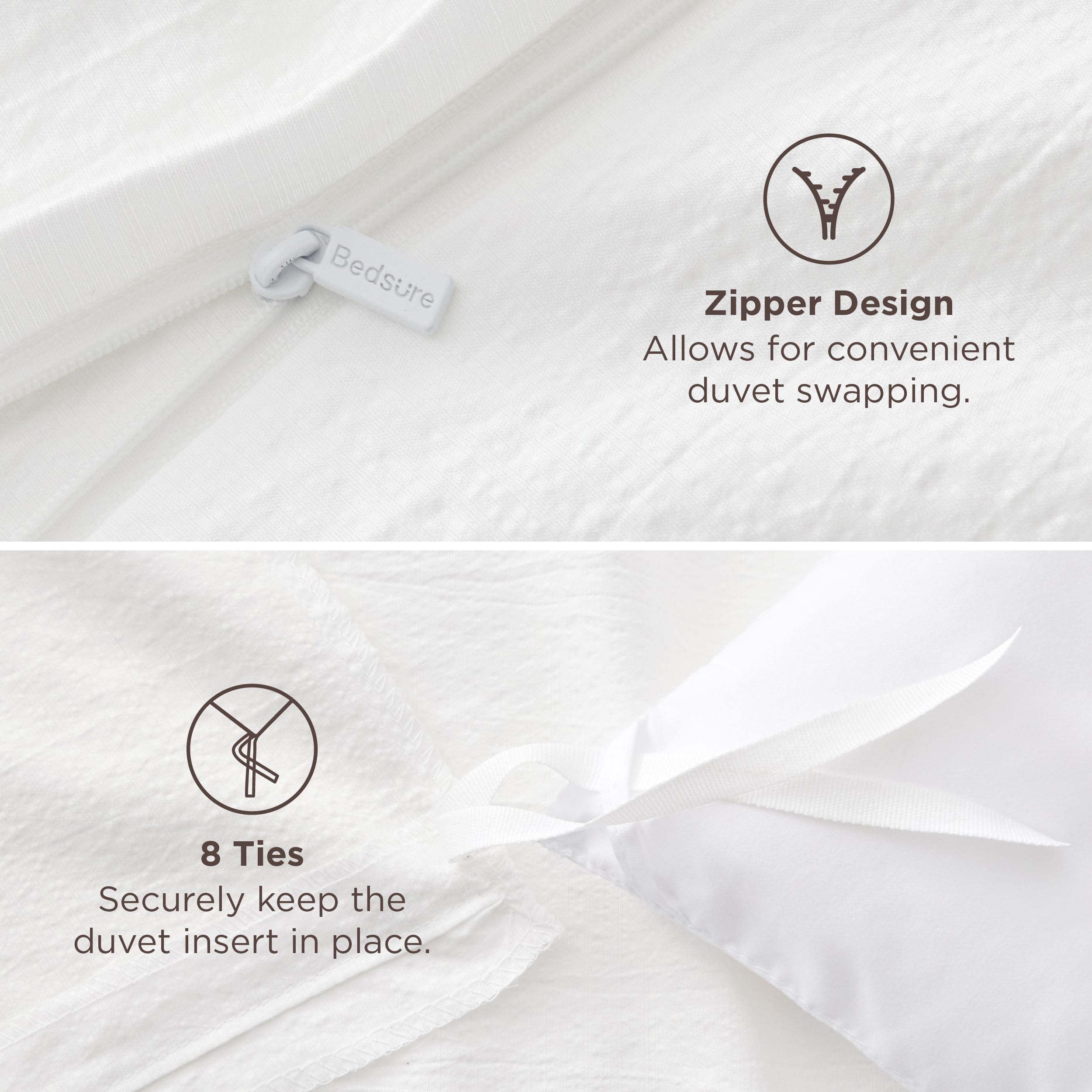 THOUGHTFUL DETAILS: Zipper closure with 8 interior ties keeps the textured duvet cover securely in place, preventing shifting throughout the night so you can move freely in bed