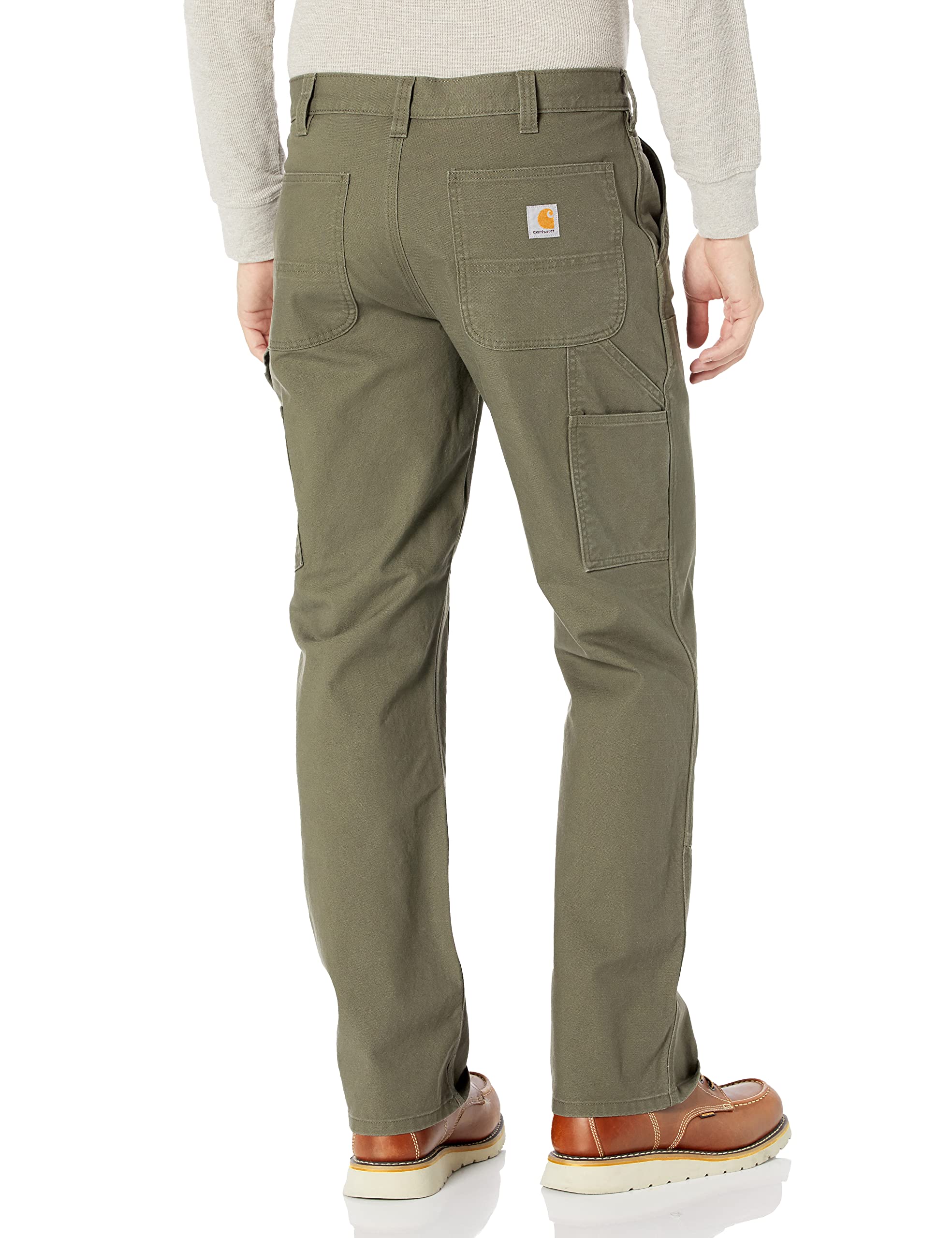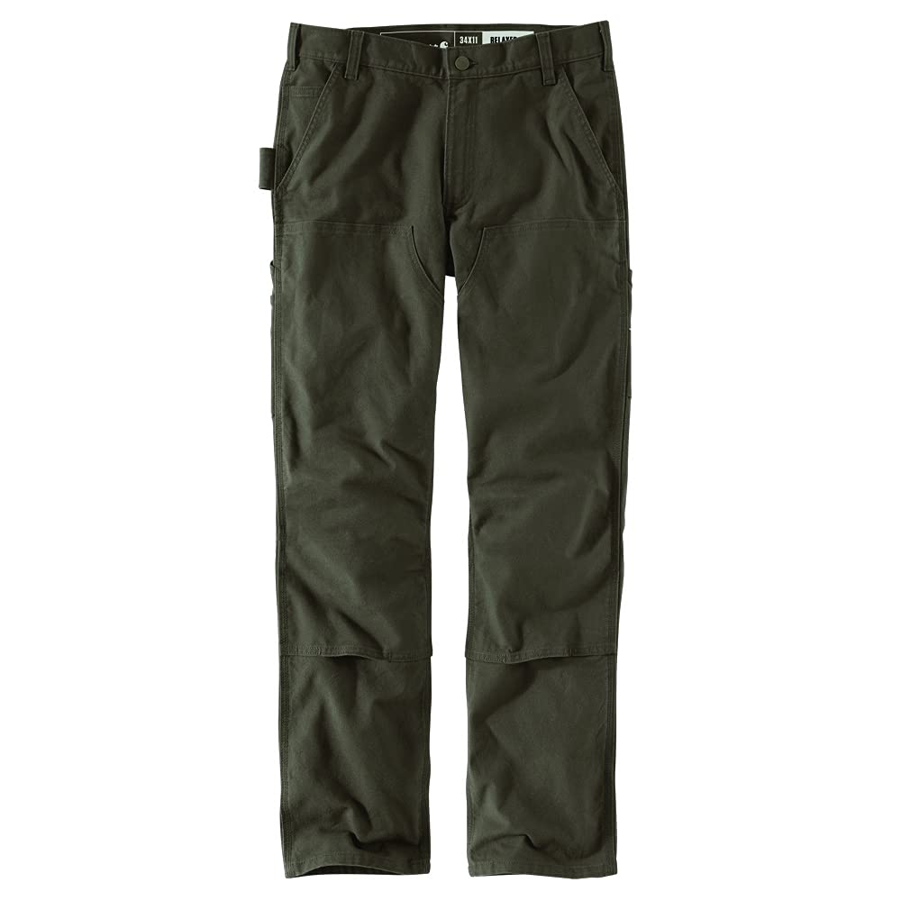 Description Built with stretch and a relaxed fit, these double-fronts make it easy to move through your workday. 12-ounce, 99 percent cotton/1 percent spandex duck • rugged flex durable stretch technology for ease of movement • sits at the waist • relaxed seat and thigh • double front with cleanout openings that accommodate knee pads • multiple tool pockets • left-leg hammer loop • stronger sewn-on-seam belt loops • heavy-hauling reinforced back pockets • straight leg opening fits over boots • imported