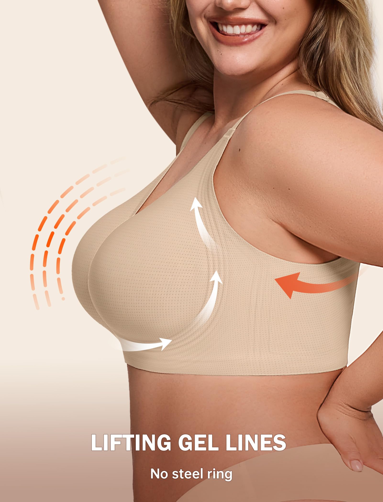 【Upgraded High Supportive Jelly Bras for Women】These wireless bras with support and lift are upgraded with 4-Layer 360° jelly strip support system that enhances your shape and controls bounce. You can even wear the push up bra as sports bras for women.The jelly bra offers all-day comfort, with no wires and no slippage.