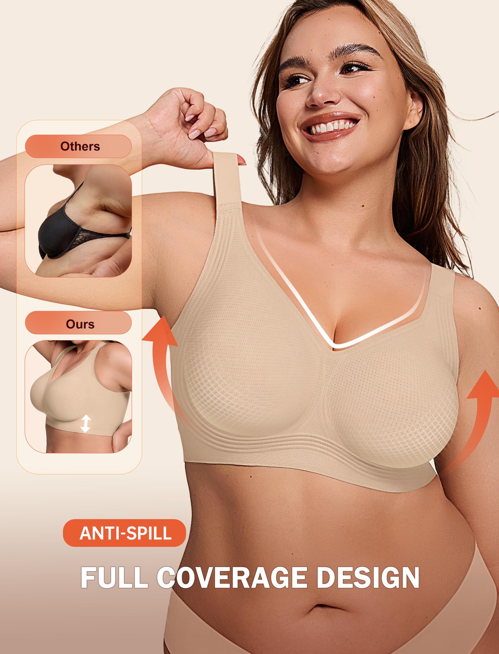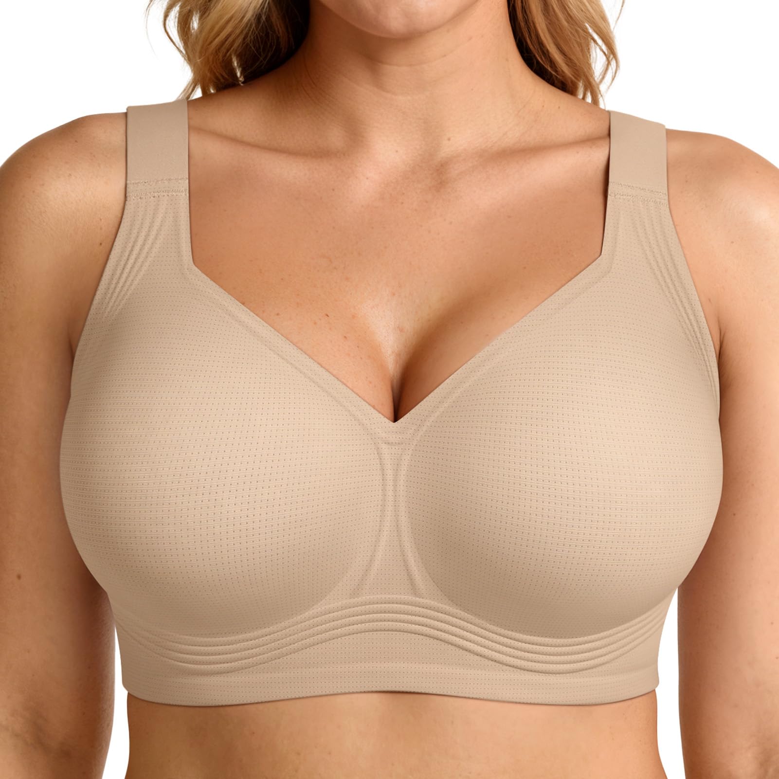 【Specially Designed for Fuller Figures】Full coverage bra design, higher side wings and side support strips, wider shoulder straps offering a maximum support and reducing breast movement during workouts or daily activities. The full coverage bras for women come in a variety of sizes, from S to 5XL, fit for CUP B to CUP DDD. Ideal for fuller figures, the wireless bras for women provide the perfect balance of comfort and style.