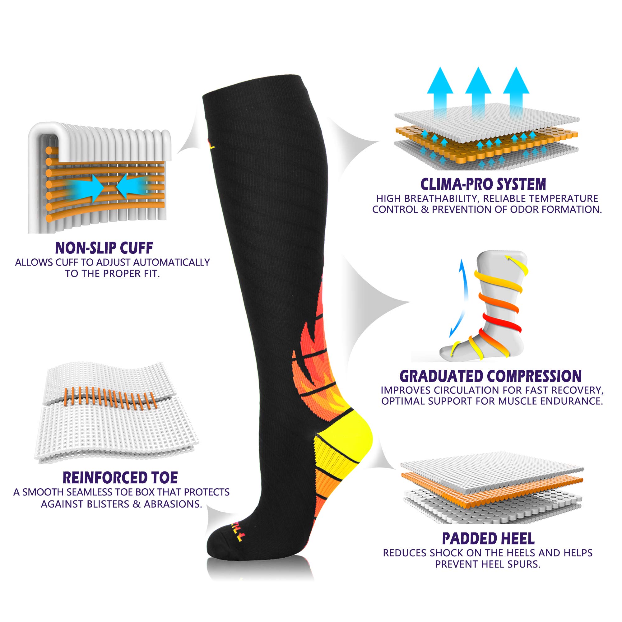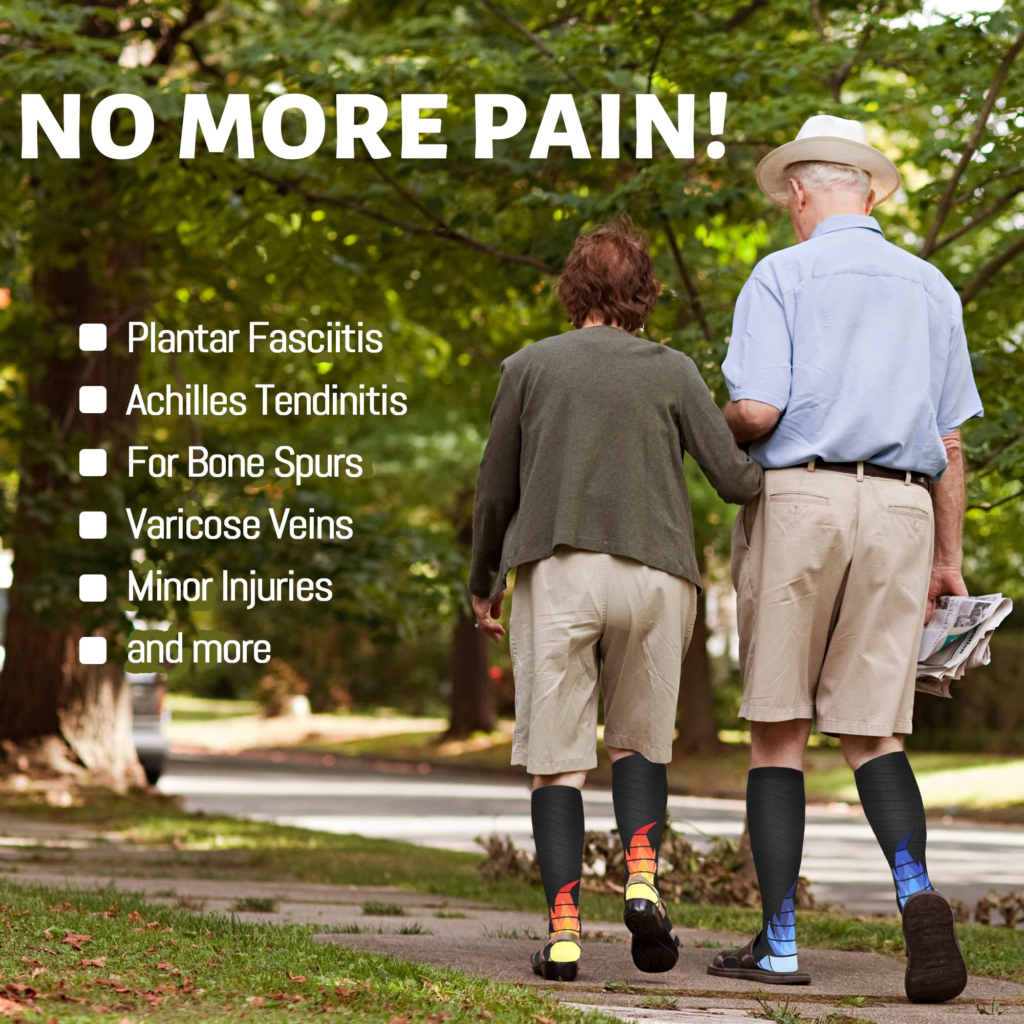 【IDEAL COMPRESSION SOCKS FOR ALL OCCASIONS】Our compression socks cater to a diverse range of needs from running nursing and traveling to sports like volleyball and basketball They also provide support for medical professionals pregnant women and individuals seeking comfort during travel or maternity With high-performance features our socks offer support and relief for both men and women across various occasions
