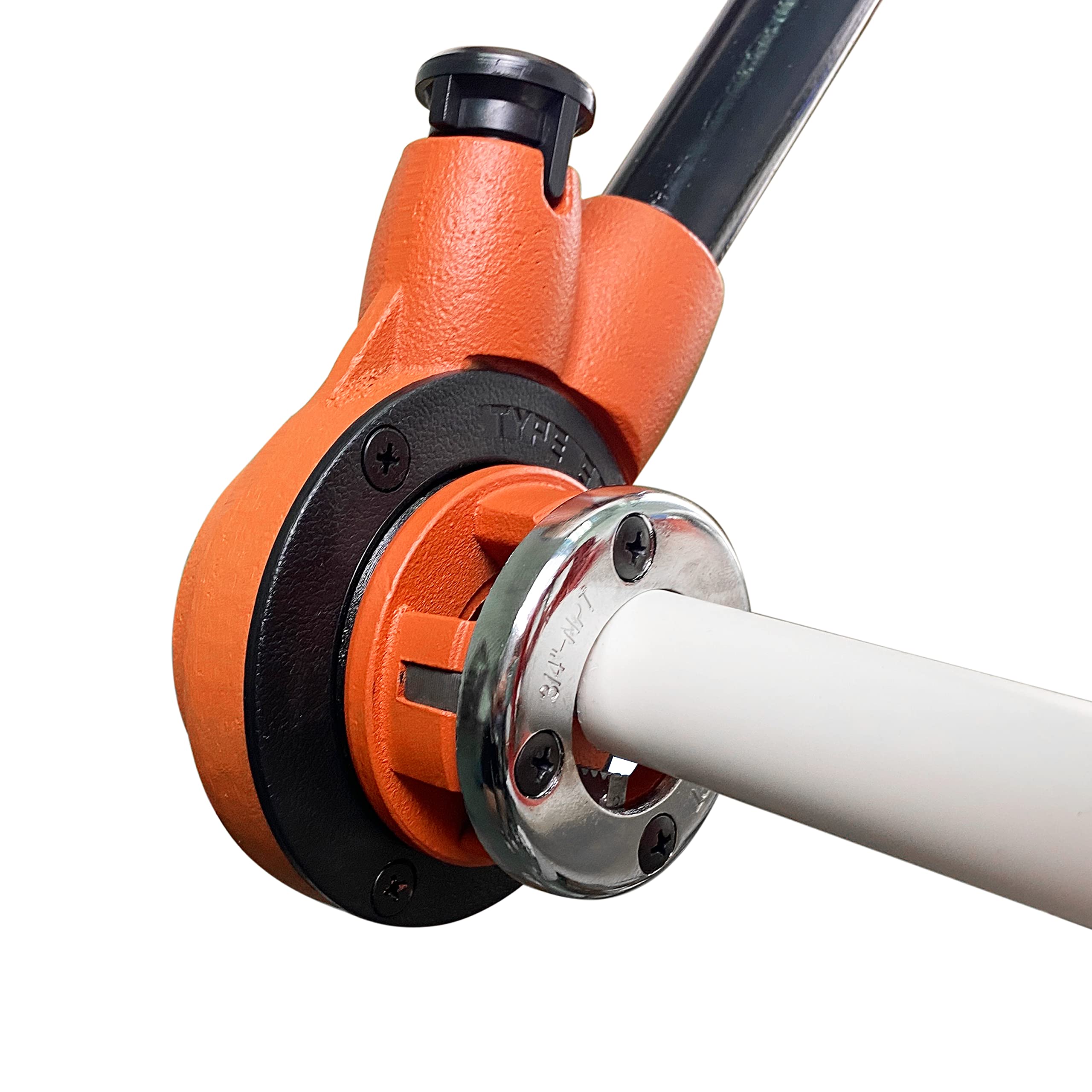 [6 Piece Set]: This ratchet tube threader kit has a total of 6 sets, 4 different size die heads, 2 tubular steel handles and a compact ratchet head to meet your work needs.1/2", 3/4", 1"1-1/4" dies