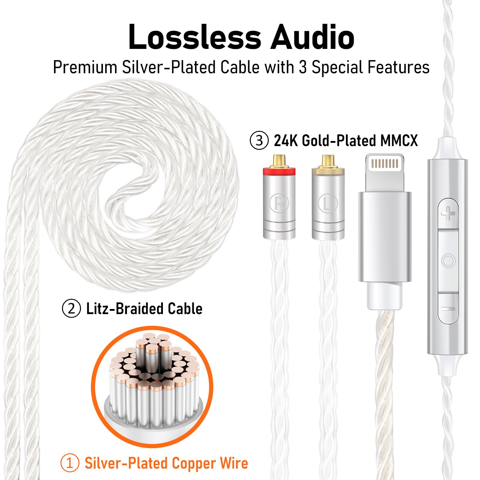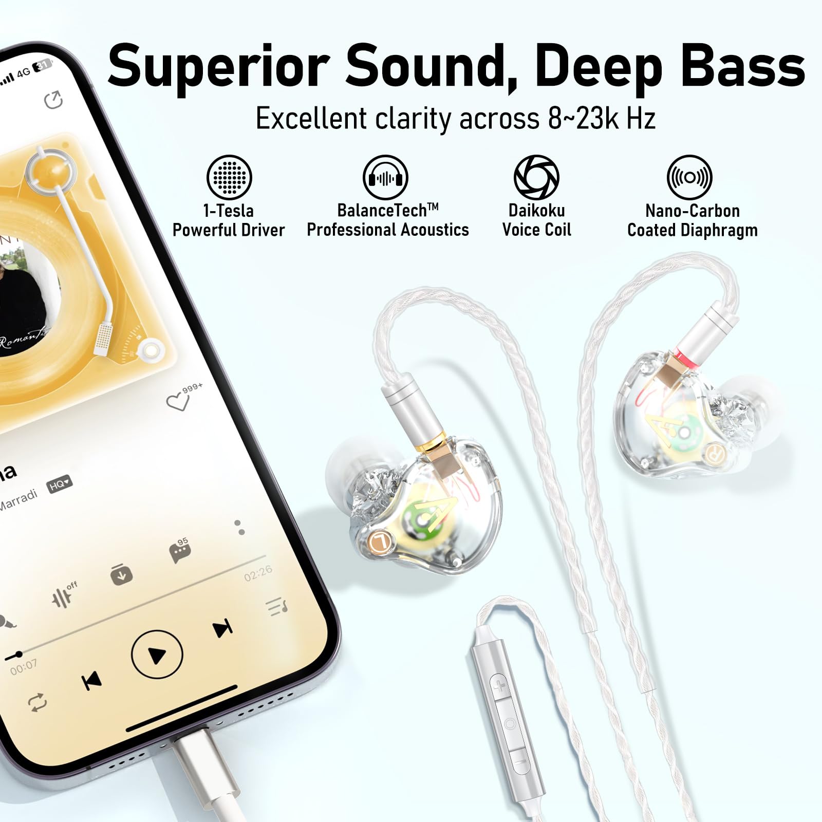 EXCEPTIONAL HIFI SOUND - Equipped with a 1-Tesla powerful driver and master-tuned professional acoustic chambers, the Vibes 202ML HiFi in-ear monitor earphones deliver precise and detailed sound across a full frequency range from 8 to 23k Hz. The high-purity, silver-plated, Litz-braided audio cable ensures stable and lossless sound transmission for pure, unaltered audio.