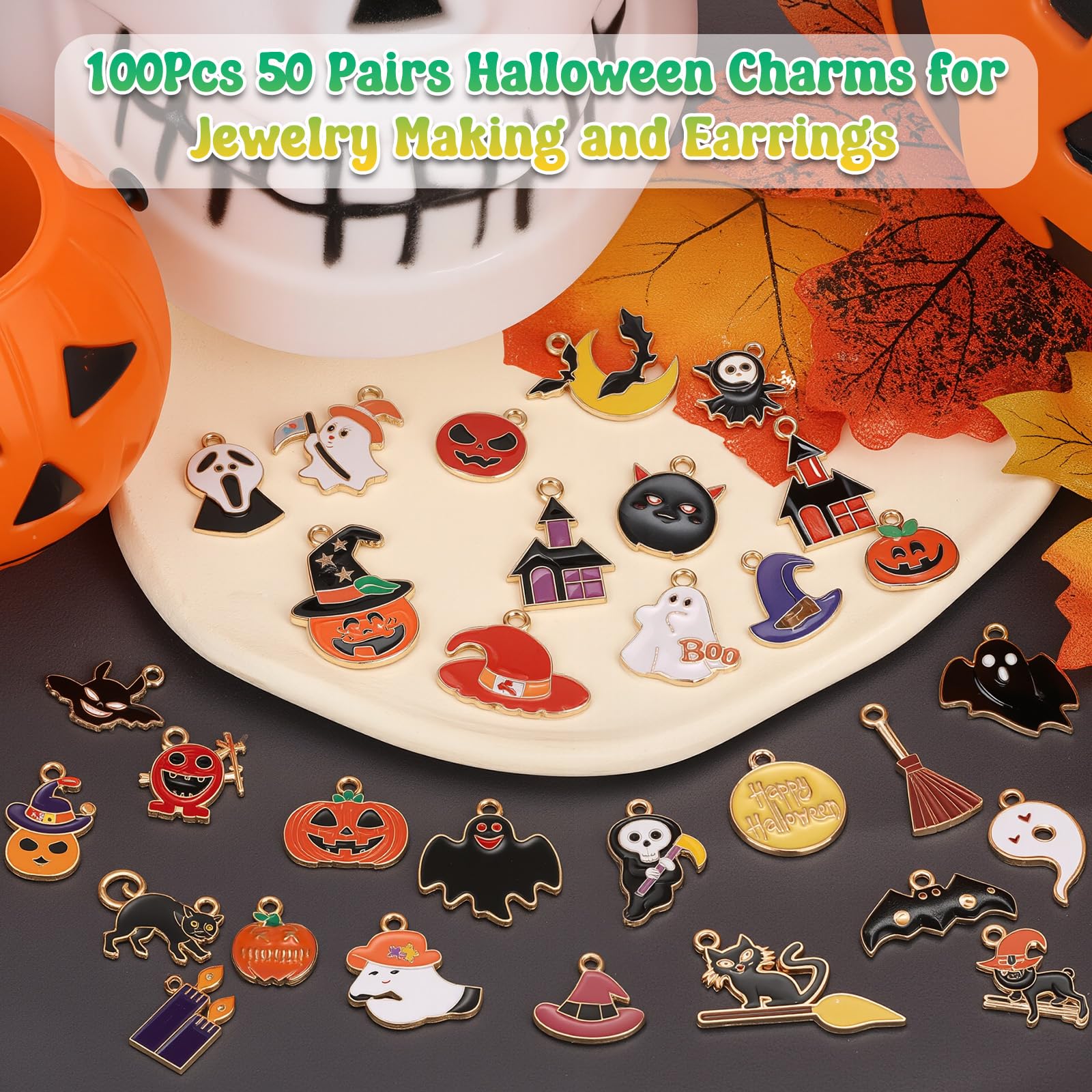 【Halloween Charms Bulk】These Halloween charms for jewelry making come with 100pcs enamel small charms in 50 matching pairs. Bulk jewelry charms also come with a plastic box for easy storage
