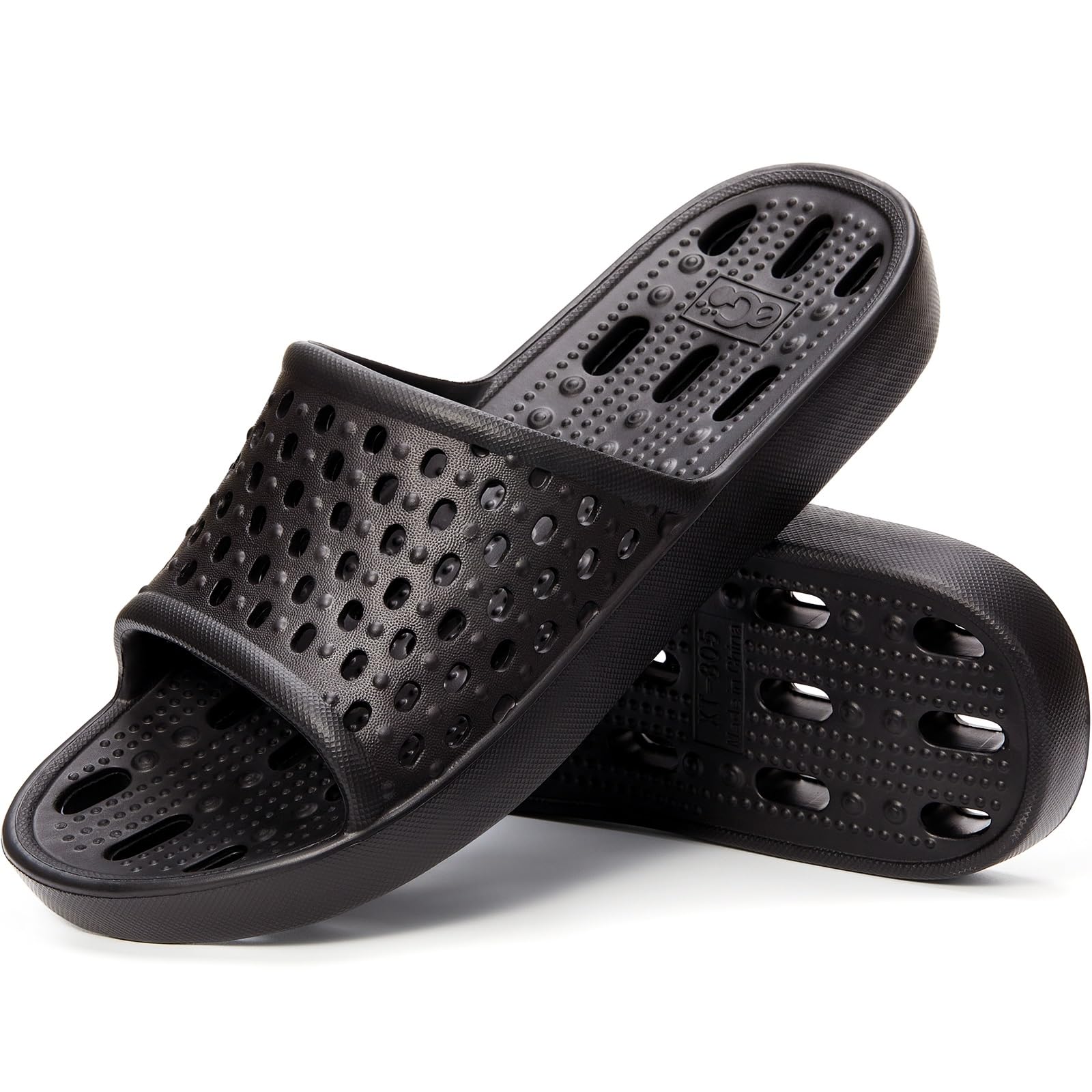 This is a very comfortable shower shoes. When you used in the shower, there are many drainage holes in the sole for quick drainage, which makes your feet dry and comfortable.