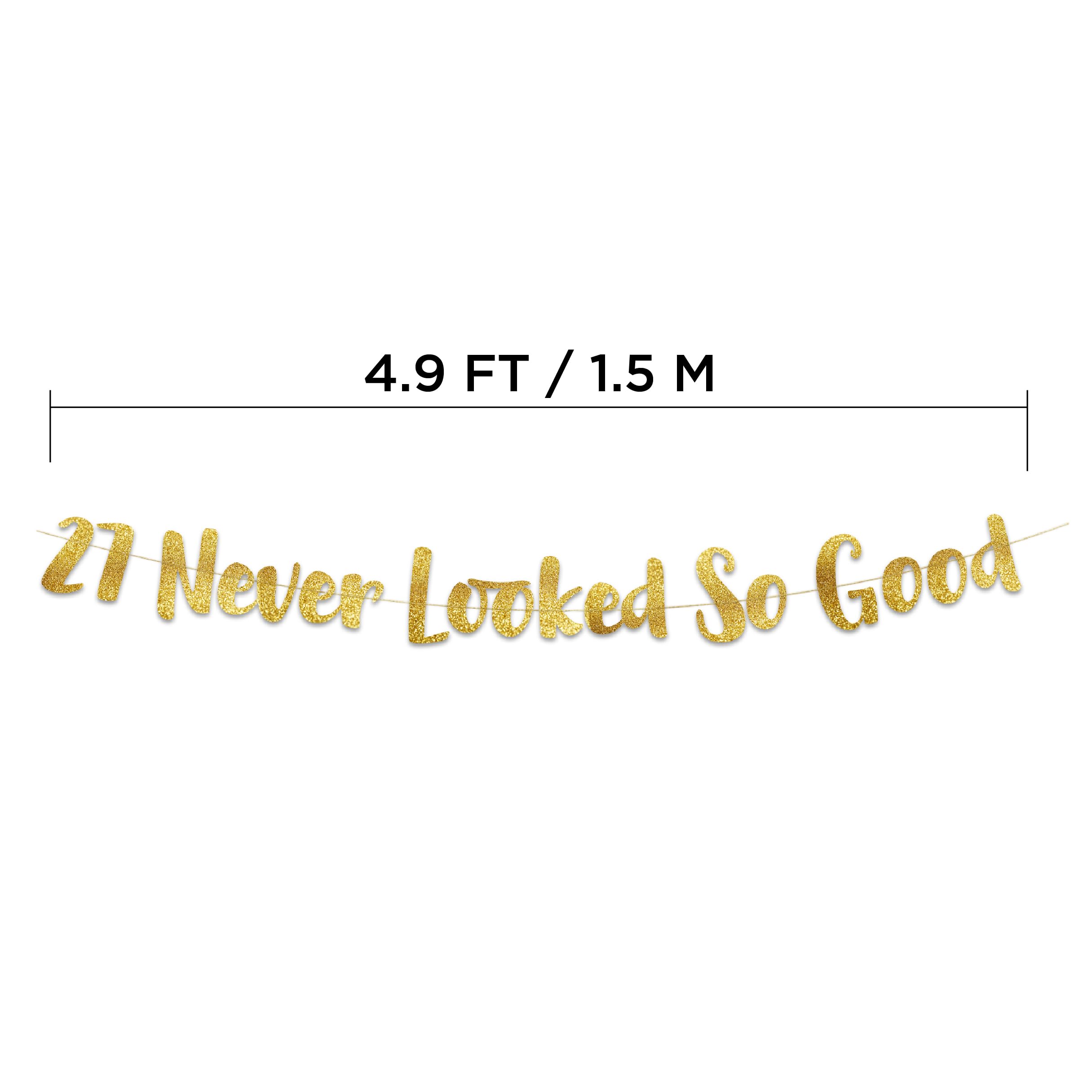 27 Never Looked So Good Gold Glitter Banner – 27th Birthday and Anniversary Party Decorations