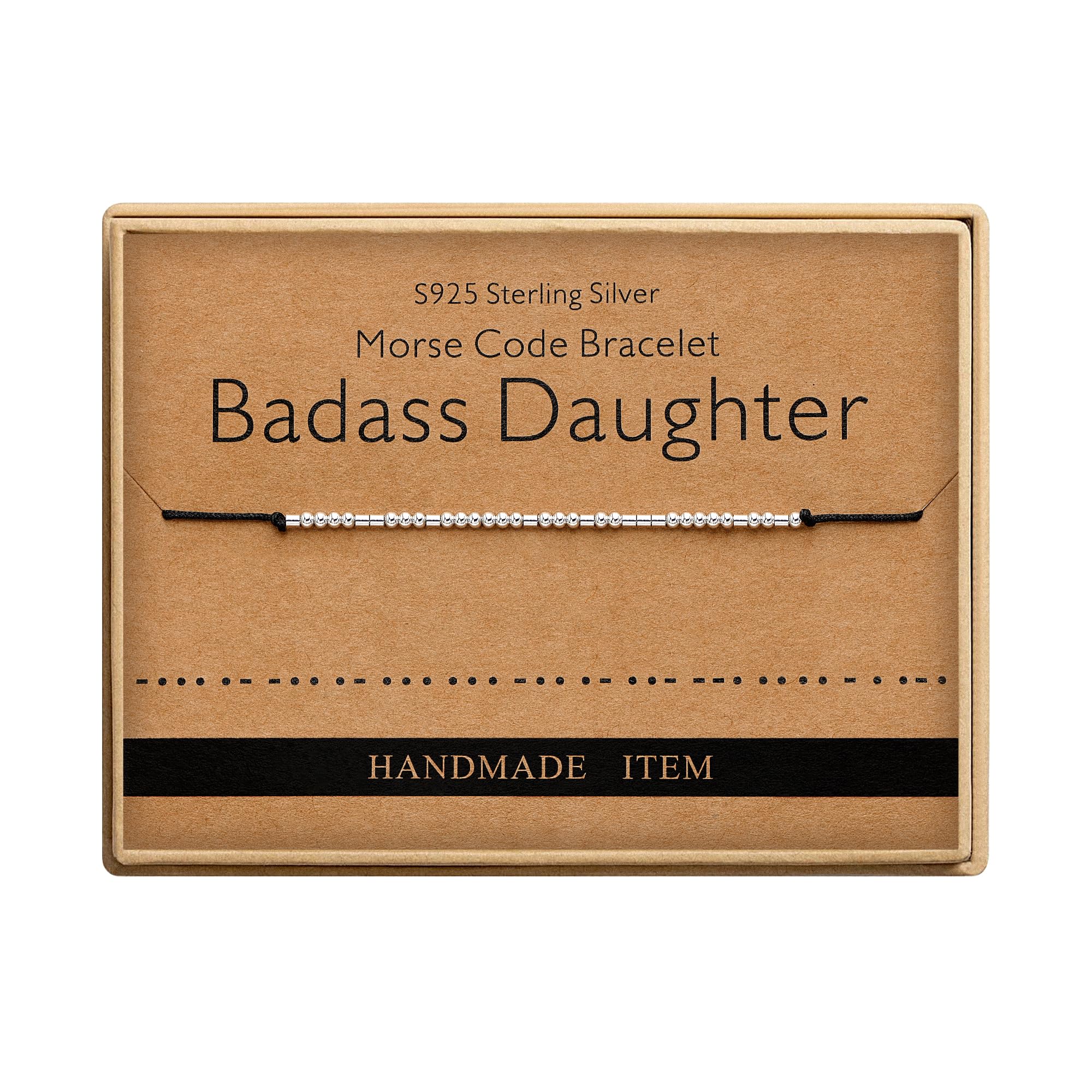 Funny Gifts for Daughter: All morse code bracelets are packed in wooden boxes. It is just to send a Daughter a unique message like "Badass Daughter" in morse code as a funny gift.