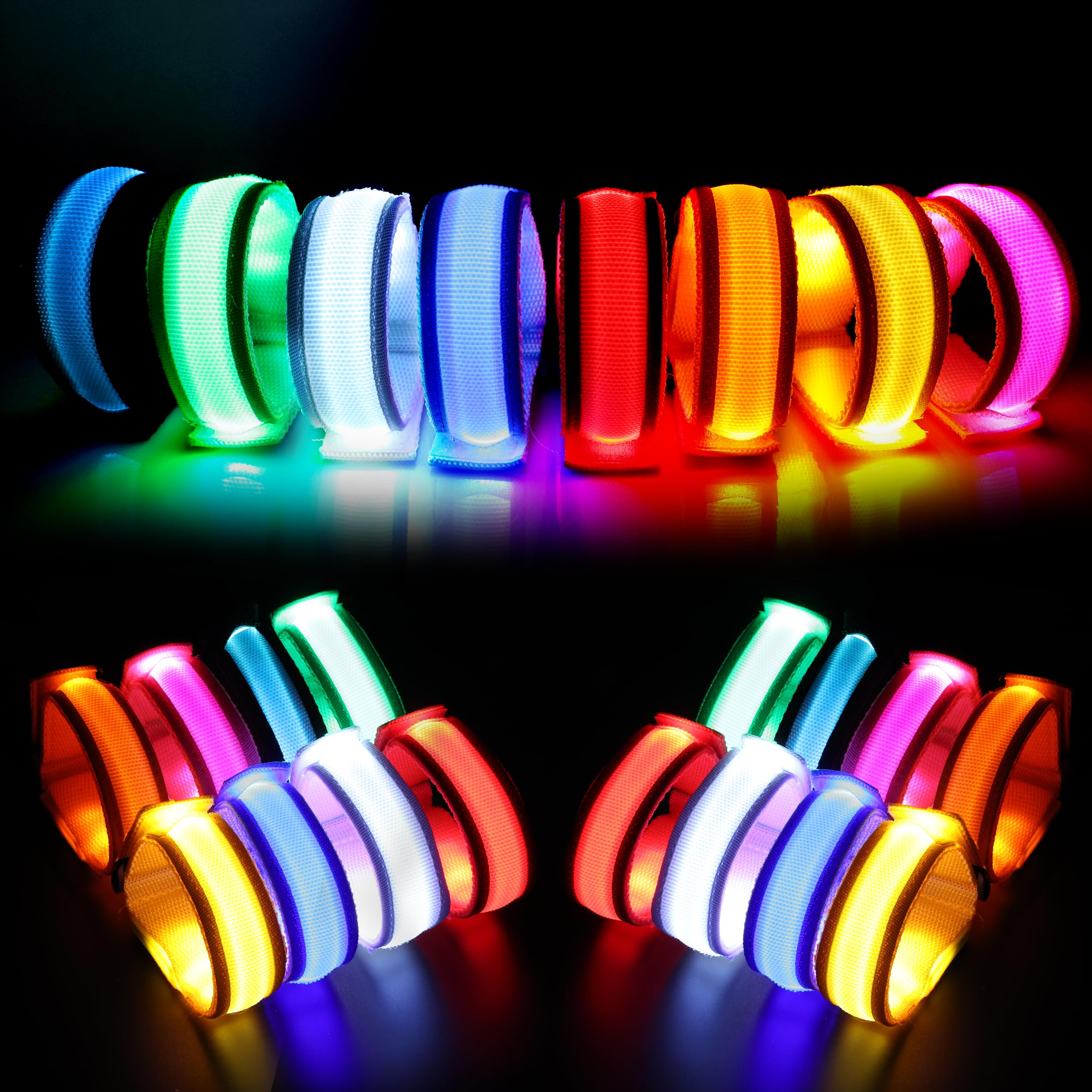 【Multi-Usages】Nicely visible while walking, riding, running, or on a motorcycle at night. Secure enough that you don't have to worry about it flying off at higher rates of speed. Also perfect for dog collar when night walking. Great party supplies. Enough for you to share with your families and friends. Kids always love these light up wristbands. Age grading: 3 + years old
