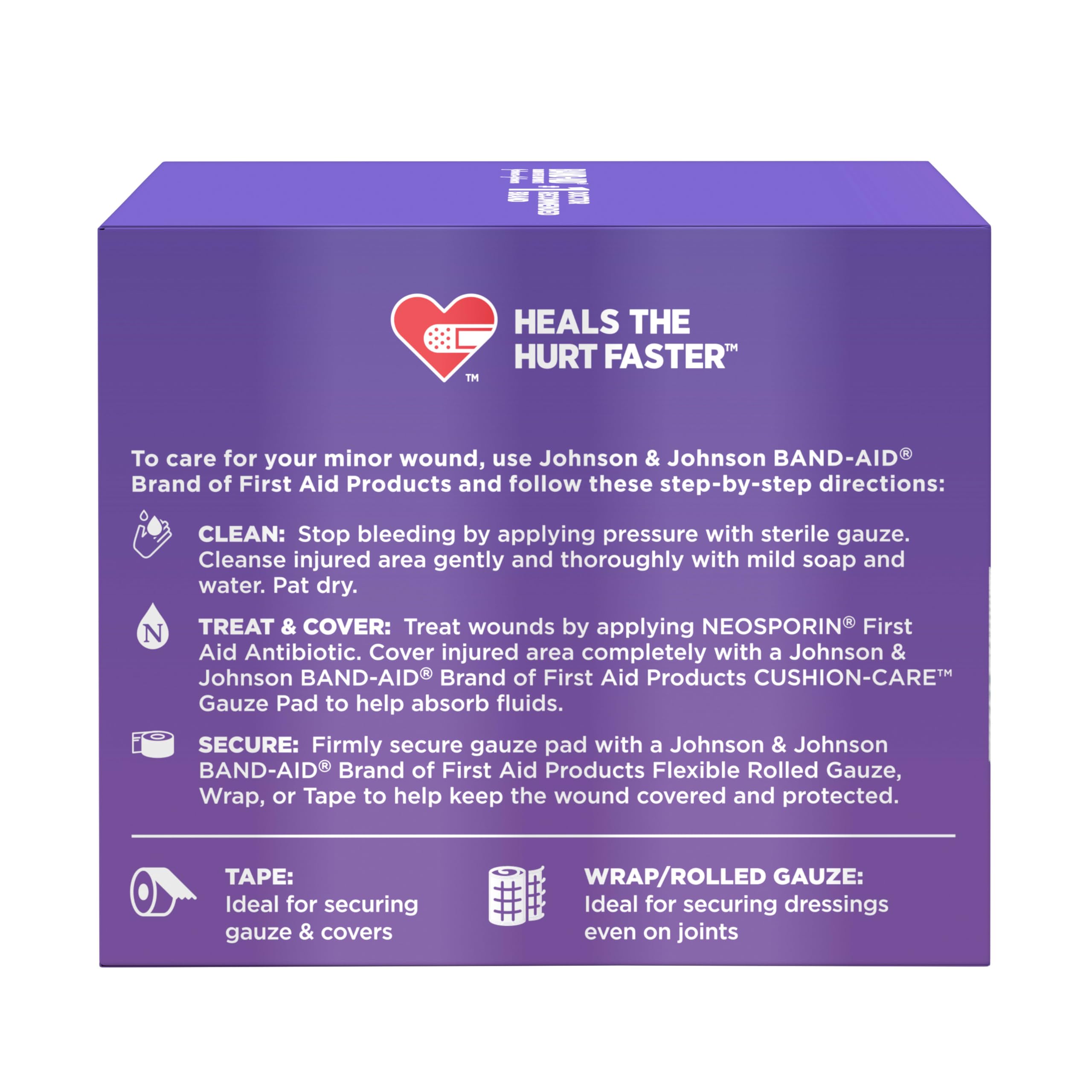 From the #1 doctor-recommended brand, these gauze pads are great first aid supplies to use with Band-Aid Brand First Aid Products Rolled Gauze and firmly secure the non-stick gauze pad in place. Gauze pads are made without natural rubber latex