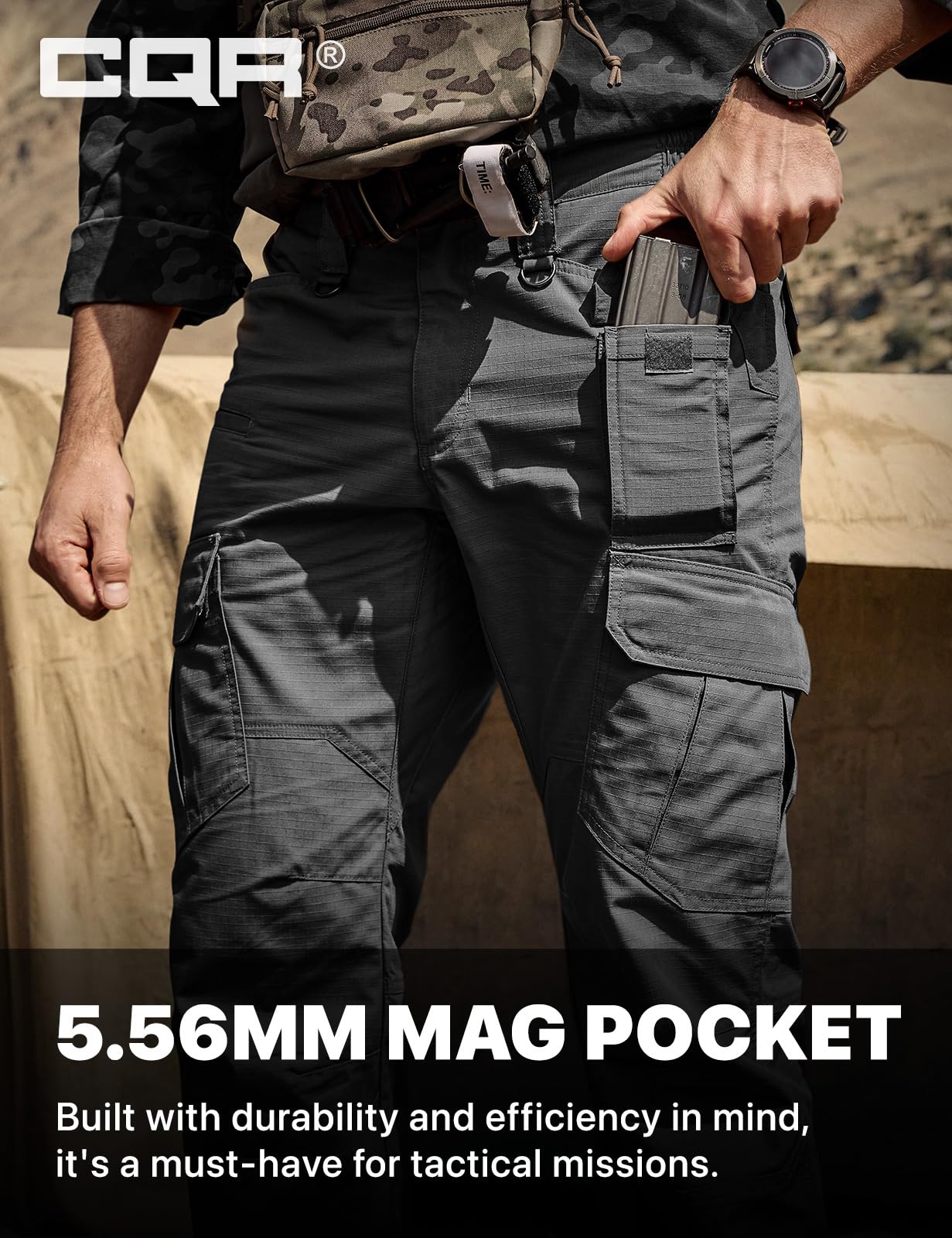 Description CQR Men's Tactical Pants Series Suitable for tactical, combat, military training, fishing, climbing, hiking, motorcycling, and outdoor activities *** Exclusive Tactical Belt is NOT included *** Materials Mix of Polyester & Cotton (Ripstop Fabric) is breathable, wrinkle-free, comfortable Duratex Ripstop Fabric Ripstop fabric has excellent durability and has water-resistant and stain-resistant Elastic Waistband Side waistband is to make a secure fit and support the active movement Tactical Layout Multi-purpose cargo pockets allow carrying various tools and equipment without having to hold them in your hands Button and Zipper Closure High-strength and high-density the Metal Alloy Button and Zipper along with a durable mounted stopper