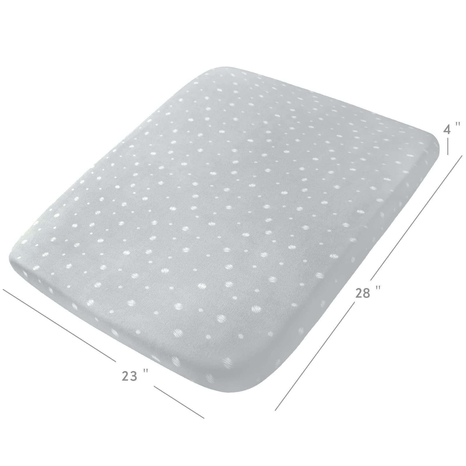 ❤ Fitted Sheet: Measures 23" x 28". Fit for 4moms Breeze Plus Bassinet and nesting mini crib. The elastic band design ensure the bassinet sheet fit tightly with the mattress and remain flat and do not move, creating a safe and comfortable sleeping environment for the baby.