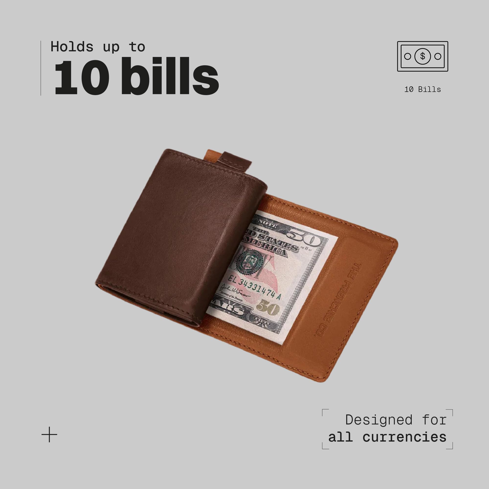 Smart pull-tab quick-access system ejects cards smoothly for rapid retrieval; designed for contactless payments and commuters, enabling one-handed access to primary cards without removing the wallet