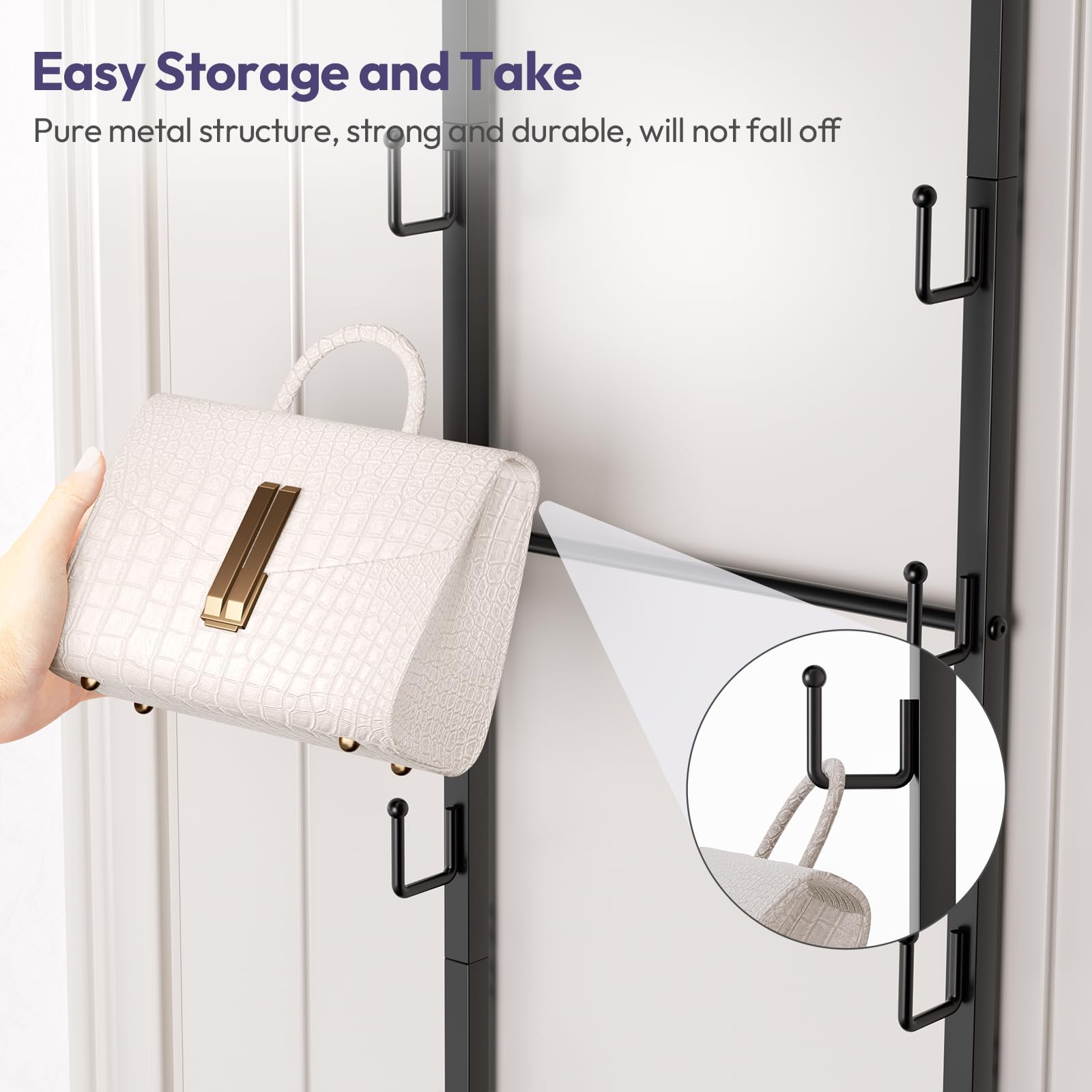 [Everyday Bag Access, Simplified]: Keep your go-to bags right where you need them. This sleek purse storage for closet offers top-down visibility and quick grab-and-go access. Each hook is spaced perfectly to prevent overlaps, making it a brilliant hanging purse organizer
