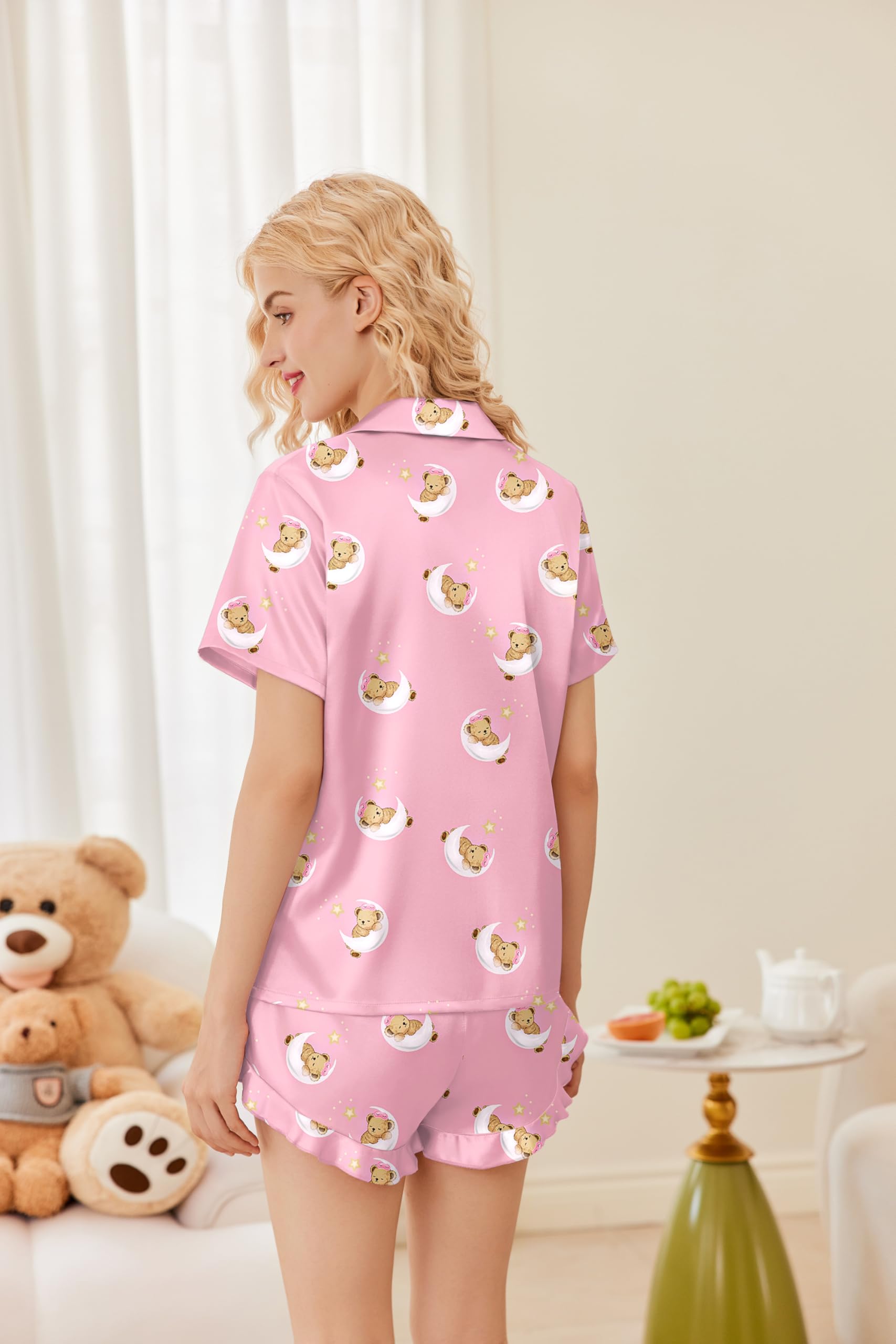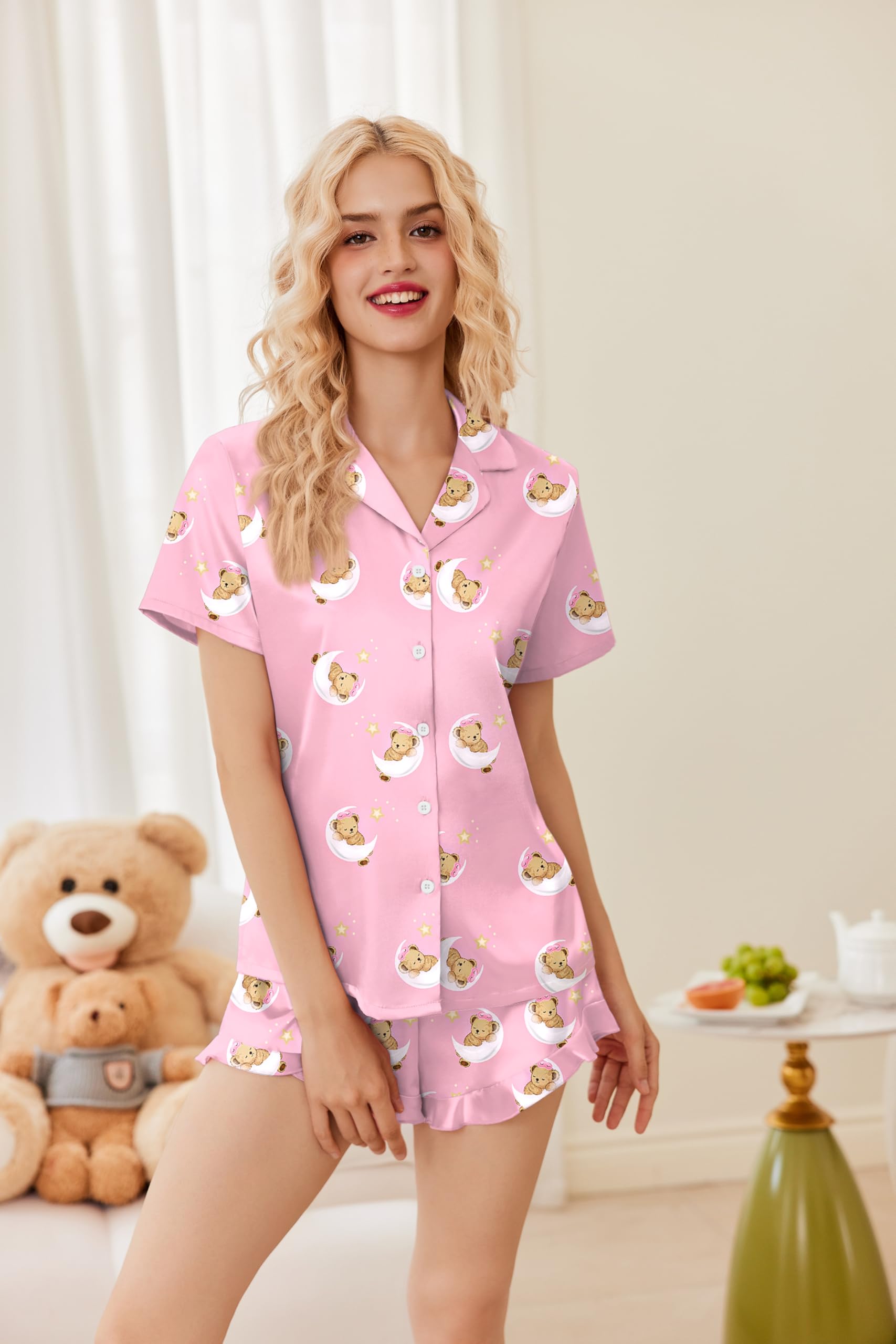 【Fit Occasion】:This pajama set features a relaxed fit, casual cute, Perfect for lounging and sleeping, pajama party, girls day, bridal sleepwear, indoor, living room, bedroom, hotel, vocation, travel, and daily sleepwear. And comfy pajama set will keep you from daily stresses and provide you a soft and comfortable night.