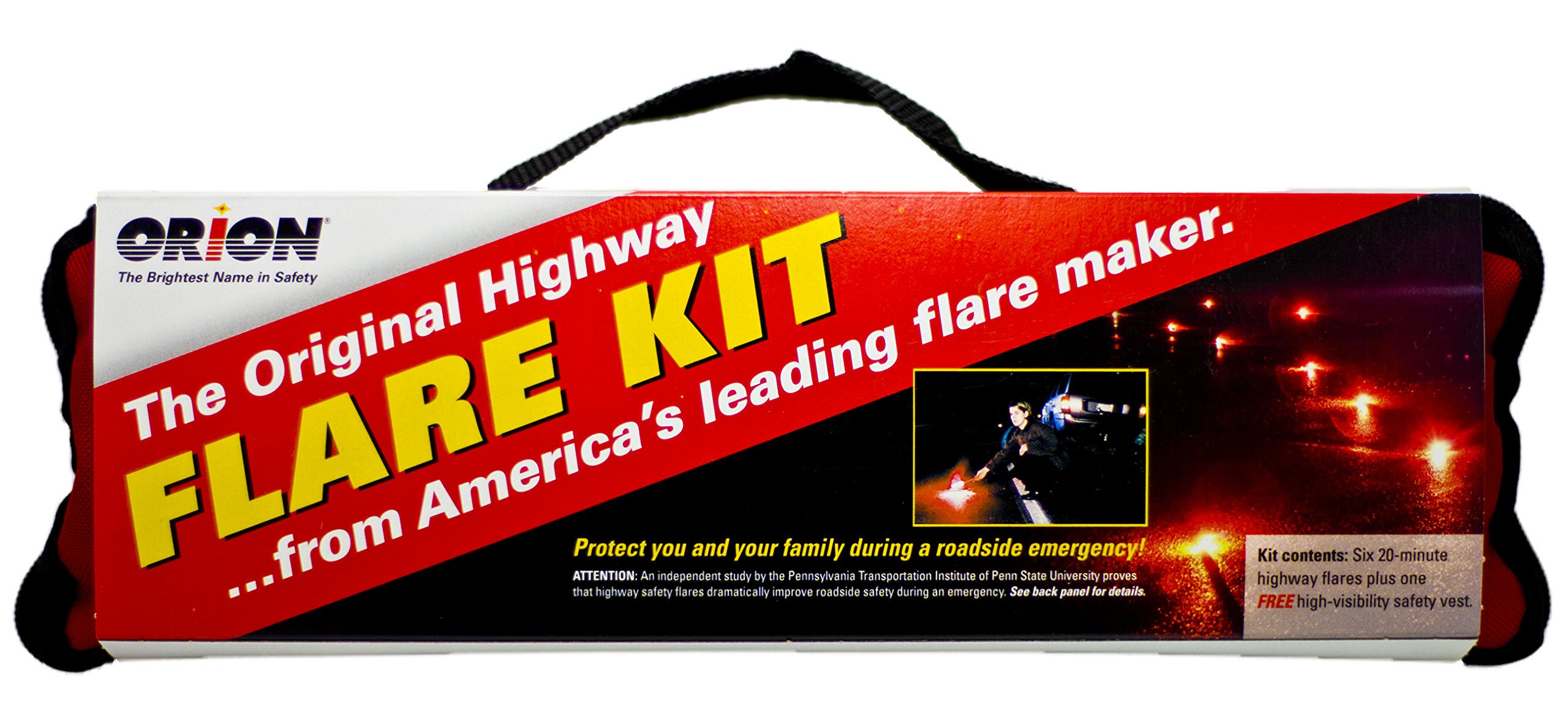 Orion Safety Products 6020 20-Minute Flares - Six Pack comes enclosed in a heavy-duty polyester bag that keeps the flares together. The bag has Velcro on the back to secure placement in the trunk or under a seat in the vehicle. Whether in Your Backyard, In the Wilderness, On the Road, or On the Water, Orion is the Leader in Unique Safety Products.
