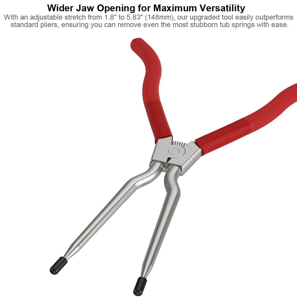 【Wider Jaw Opening for Maximum Versatility】With an adjustable stretch from 1.8" to 5.83" (148mm), our upgraded tool easily outperforms standard pliers, ensuring you can remove even the most stubborn tub springs with ease.