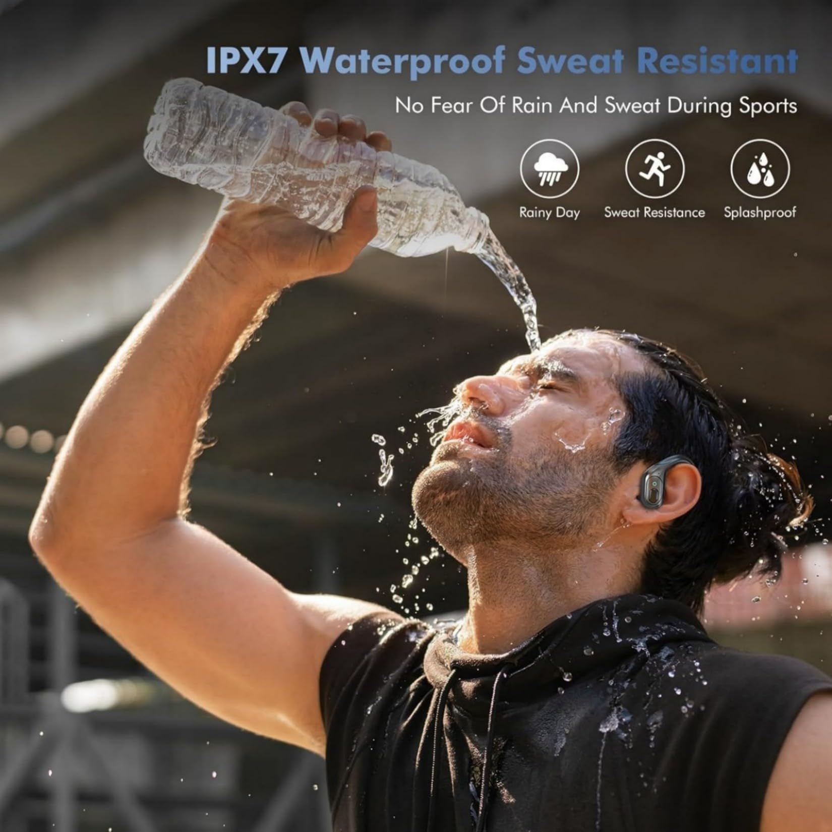 Ergonomic Sports Design: The sports headphones features ear hooks made of an innovative TPE (elastic) material, the ultra-light and ergonomic design allows you to wear them for a long time without feeling uncomfortable. Try the three tip sizes to get snug in ear headphones fit and create a perfect seal for crystal clear sound. The wireless earbuds bluetooth are waterproof with an IP7 nano-coating to protect them when sweating or getting wet