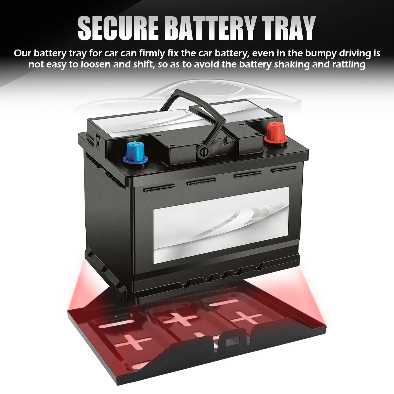 Sturdy and Durable: Car battery tray is made of iron with high strength and hardness to withstand daily friction and vibration but not easy to break and damage, sturdy and durable, and the surface of baking paint treatment, not easy to rust, more wear-resistant, to keep long-term stable use