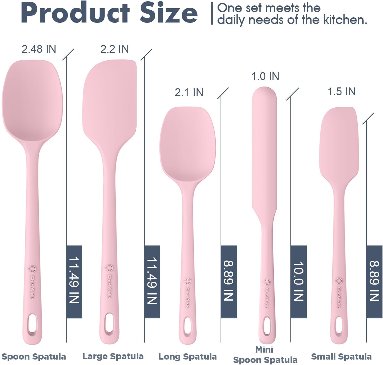 Versatile for Everyday Task: The kitchen utensils set include 5 spatulas which can meet all your needs, the sizes and shapes cover a wide variety of uses. Color availability is a plus. Get ready to start a new recipe