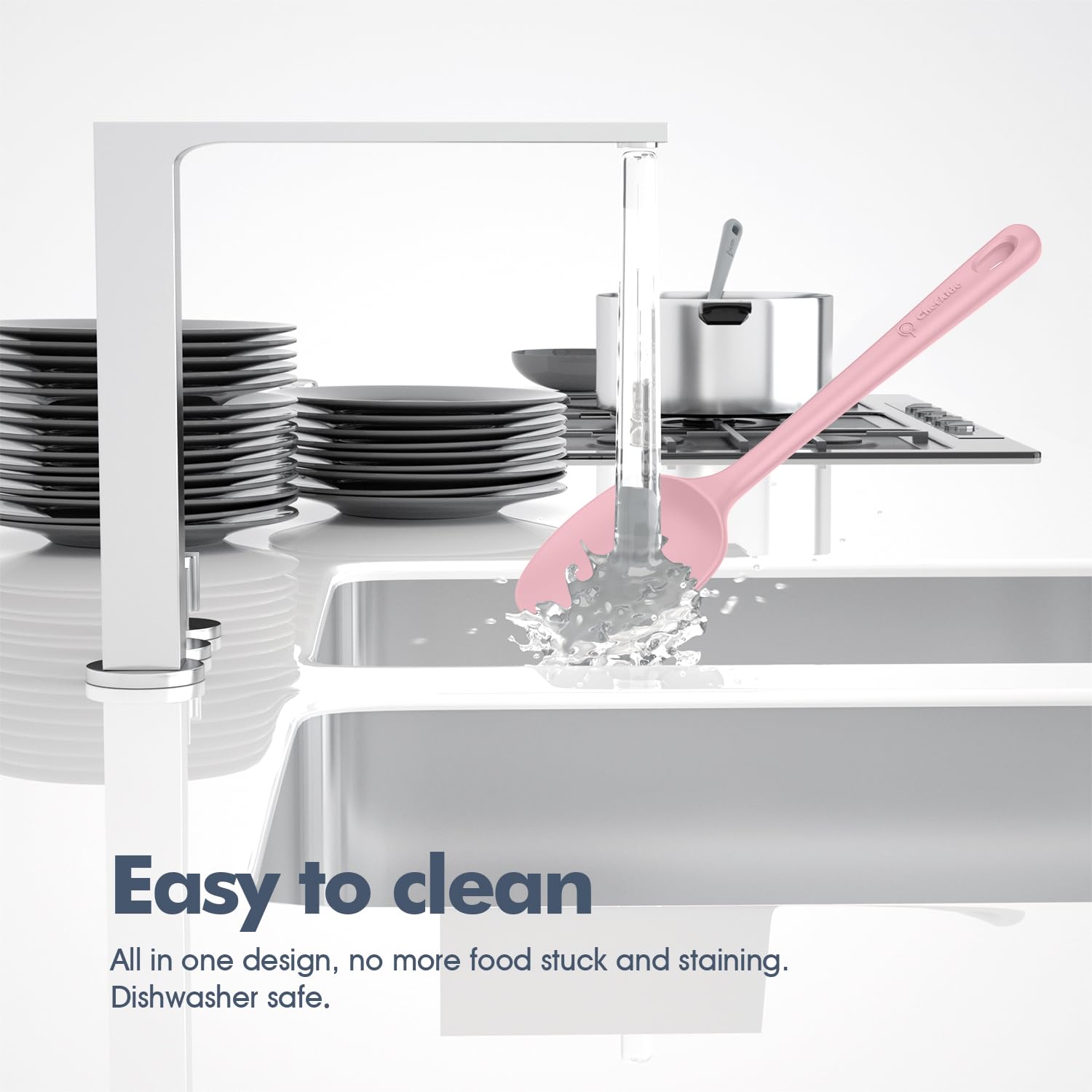 One-Piece for Easy to Clean: With the unique Seamless One Piece Design, there is no crevices for food to stuck in, the handle will never enter the water. It is very easy to clean and dishwasher safe