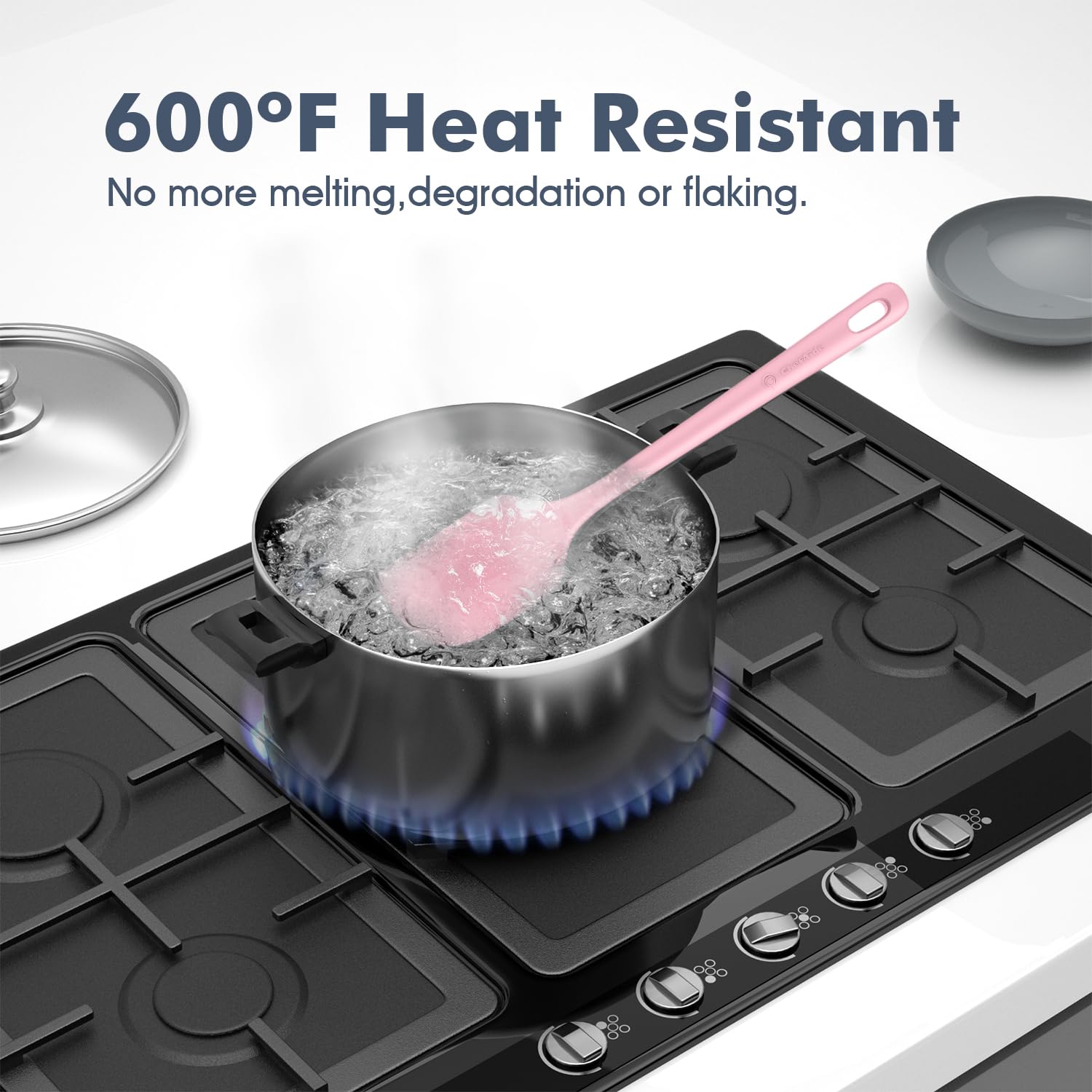 Premium 100% Food Grade Silicone: The silicone spatula set is made of healthy and friendly material, resistant to high temperatures up to 600 °F. No more melting, cracking and worrying