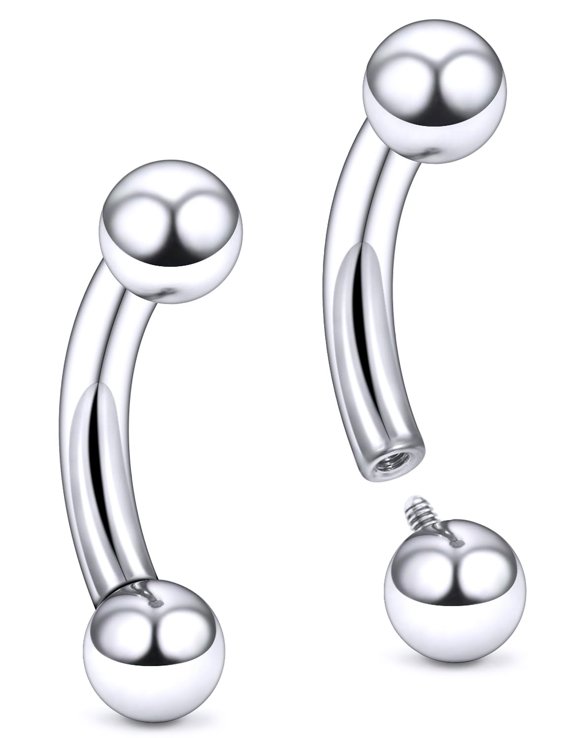 【Multiple Uses】: Titanium internal thread Curved Barbell Piercing Used as Eyebrow Piercing Jewelry, Anti Eyebrow Piercing Jewelry, Vertical Labret Lip Jewelry, Rook Earrings, Bridge Piercing Jewelry, Small Blley Button Ring, Navel Rings, Frog Eyes Piercing Jewelry, Snake Eyes Tongue Rings, Snake Eyes Piercing Jewelry, Vertical Hood Piercing Jewelry, Surface Tragus Piercing Jewelry, VCH Piercing Jewelry.