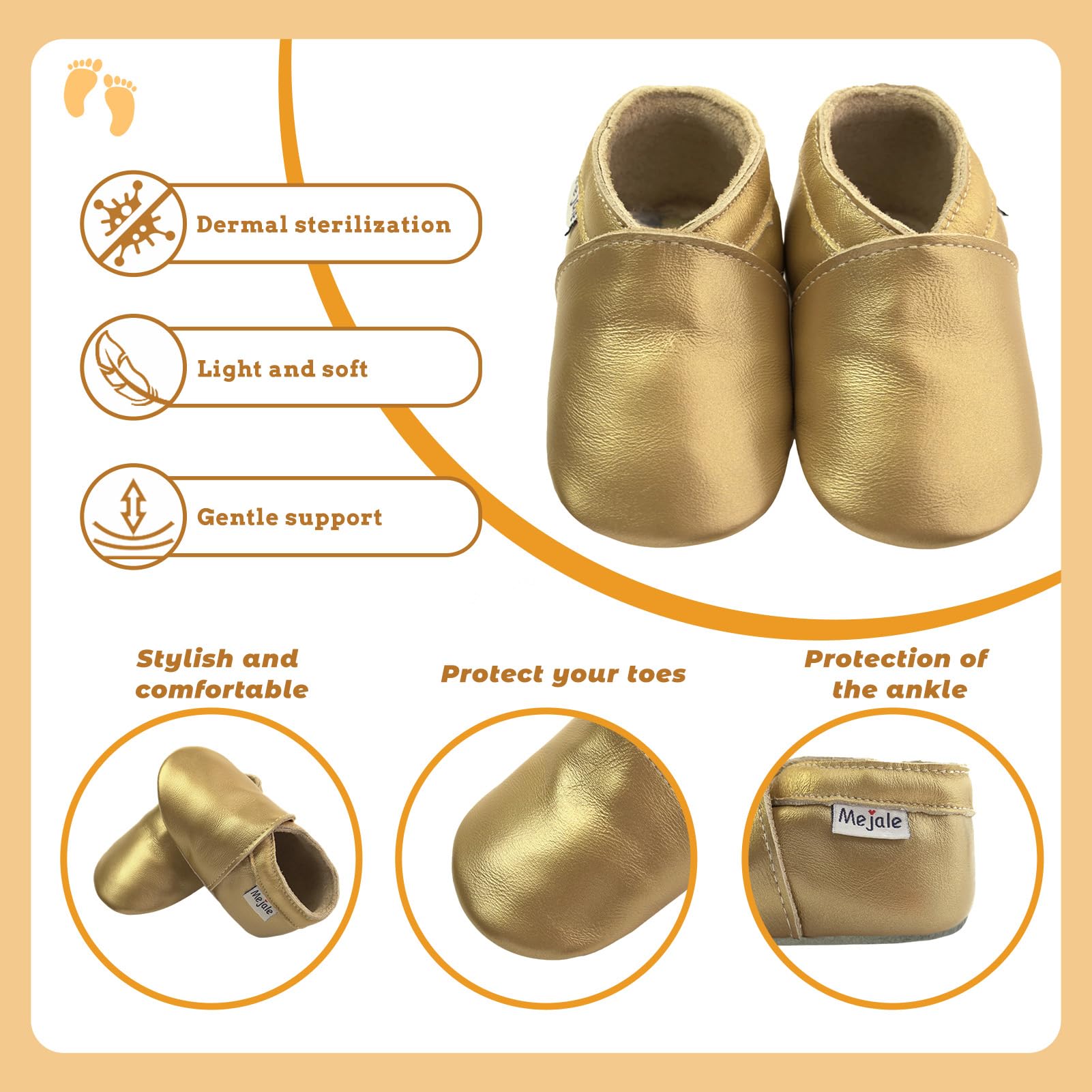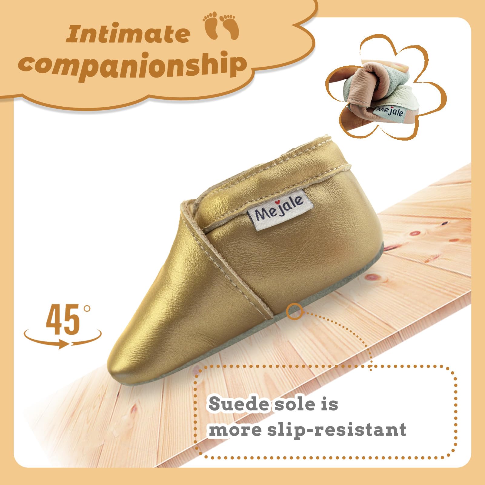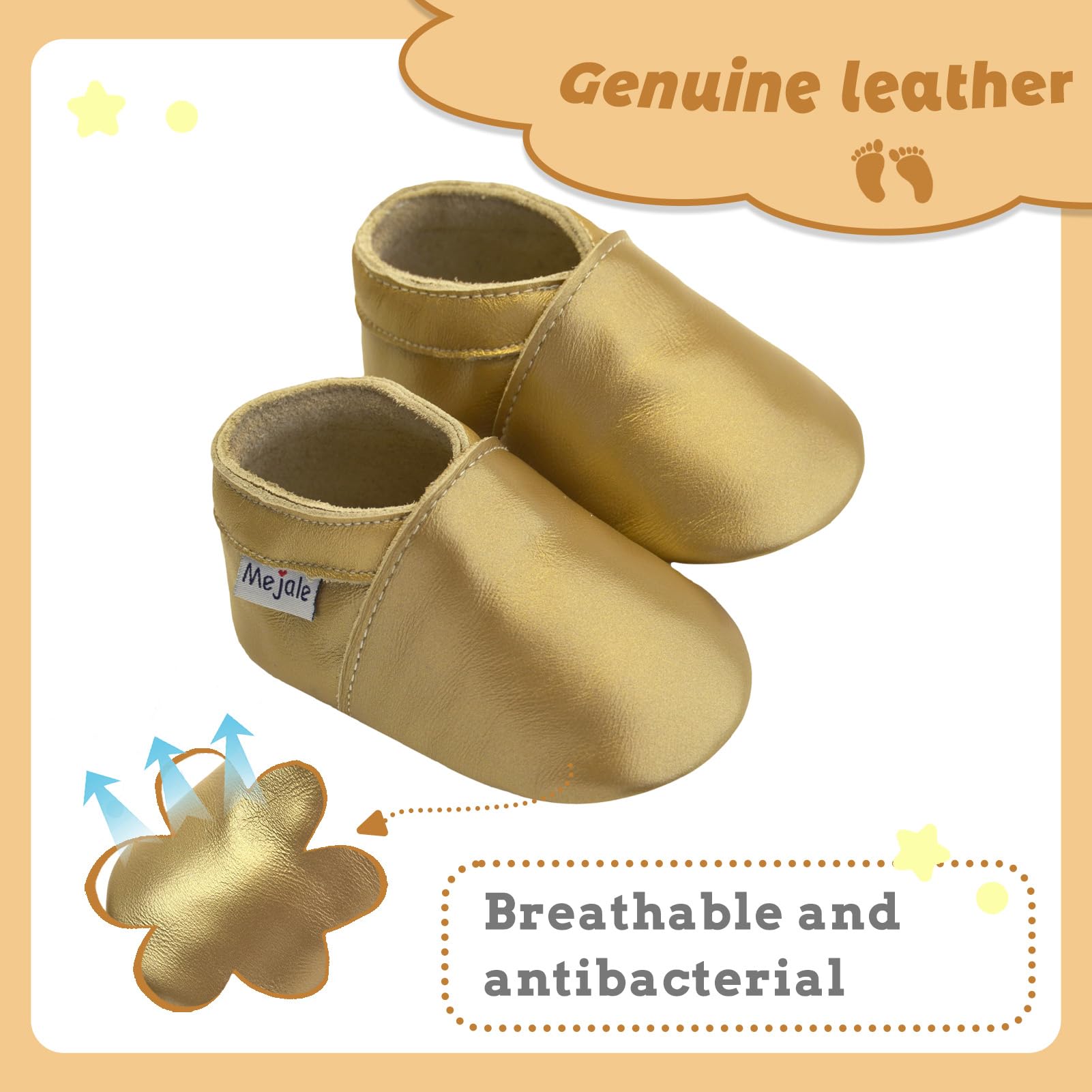 β₯Made of genuine soft Leather, slip-on shoes with elastic ankle, great shoes between a sock and a shoe for beginning crawlers and walkers. The moccasins soft leather can protect the baby's feet and enable them to learn to walk in a positive and natural manner
