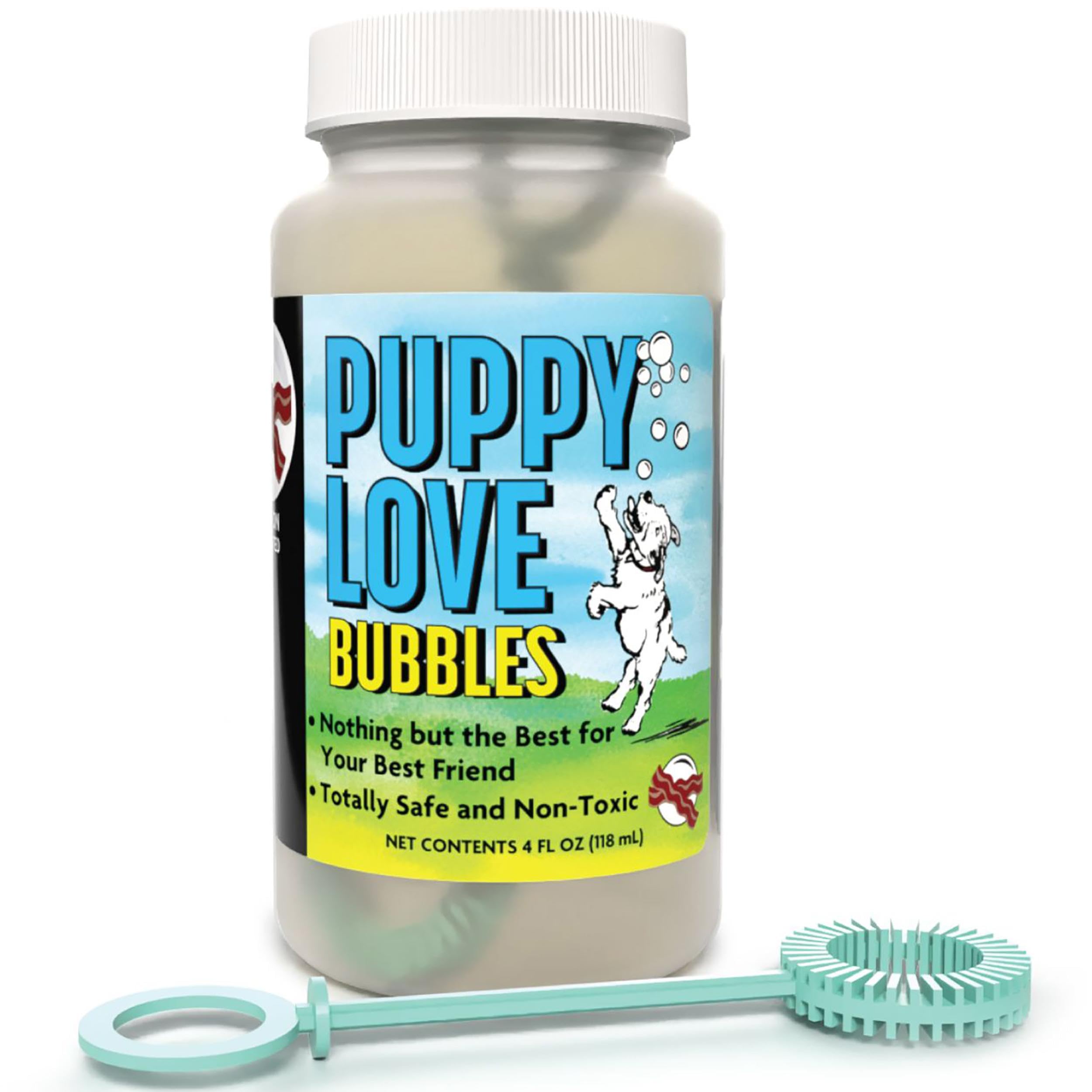 PUPPY LOVE BUBBLE: BACON & PEANULT BUTTER - Irresistible Bacon and Peanut Butter scented bubbles for dogs. Everyone's favorite bubbles now come in canine-friendly scents that will have Fido jumping for joy Puppy Love Bubbles are high-quality and long lasting as they float through space -- to the delight of dogs and people alike. The exclusive formula will create tons of fun and playful bubbles. Available in both bacon and peanut butter scents, Puppy Love Bubbles will bring out a dog's inner puppy and remind them of what a lucky dog they truly are It's a great way to get your dog's energy out and give them exercise at the same time. Made with a non-toxic and allergen-free formula, our bubbles are safe for use indoor and out. Whether you're looking for a new form of doggy exercise, some memorable dog party entertainment, or good old-fashioned backyard fun, you'll find it all in a bottle of Puppy Love. It will be Love at first POP These bubbles will become an essential part of your dog's daily activities. The Atomic Bubbles brand has grown over the past decade. Entrepreneurs by nature, the owners began the Bubble Bus in 2005 and have franchises in several states.