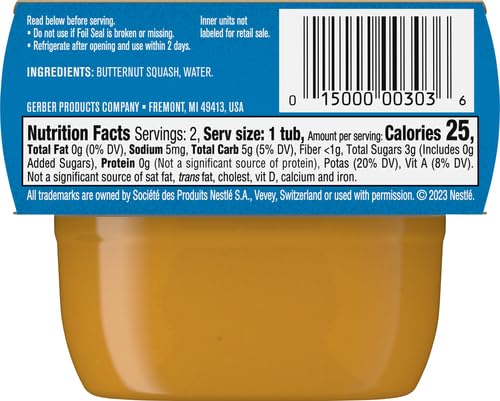 Gerber 1st Foods Baby Food, Butternut Squash Puree, Natural & Non-GMO, 2 Ounce Tubs, 2-Pack