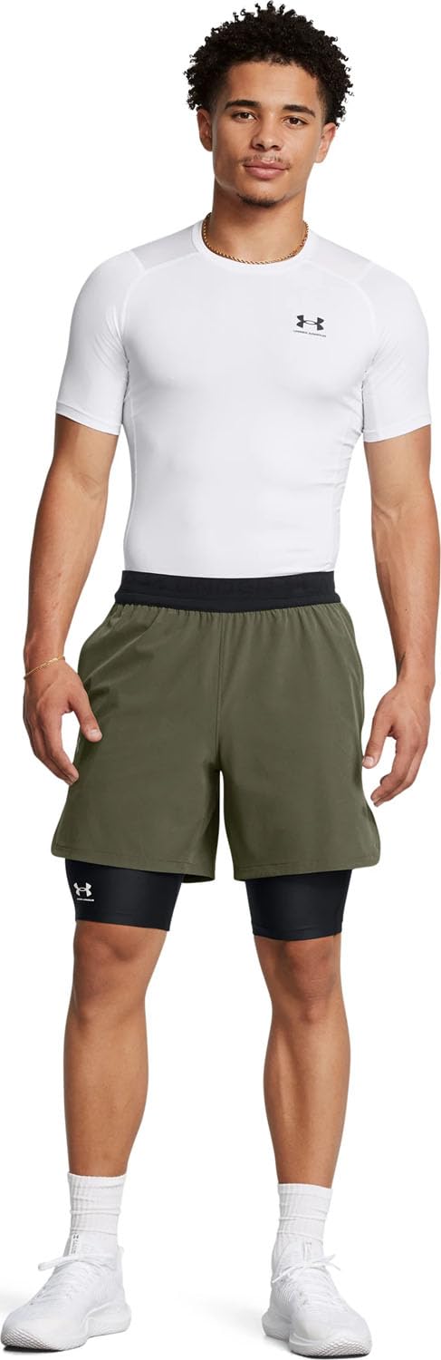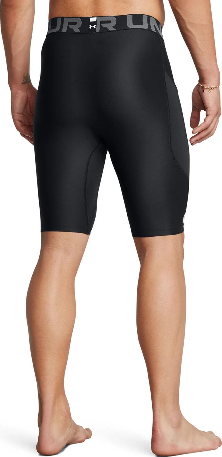 Description HeatGear® Armour is our original performance baselayer—the one you put on first and take off last. So we made it extra comfortable by wicking sweat and stretching so you can move. No athlete can go without it. Super-light HeatGear® fabric delivers superior coverage without weighing you down. Strategic mesh panels for added ventilation where you need it. Material wicks sweat & dries really fast. Ergonomic design keeps seams off high abrasion areas & increases durability. Wide, exposed elastic waistband with wordmark detail. Updated gusset design provides ultimate support & comfort. Drop-in Strength Pocket™ on right side for easy storage. Inseam: 9"". No fly. Compression: Ultra-tight, second-skin fit. 84% Polyester/16% Elastane.