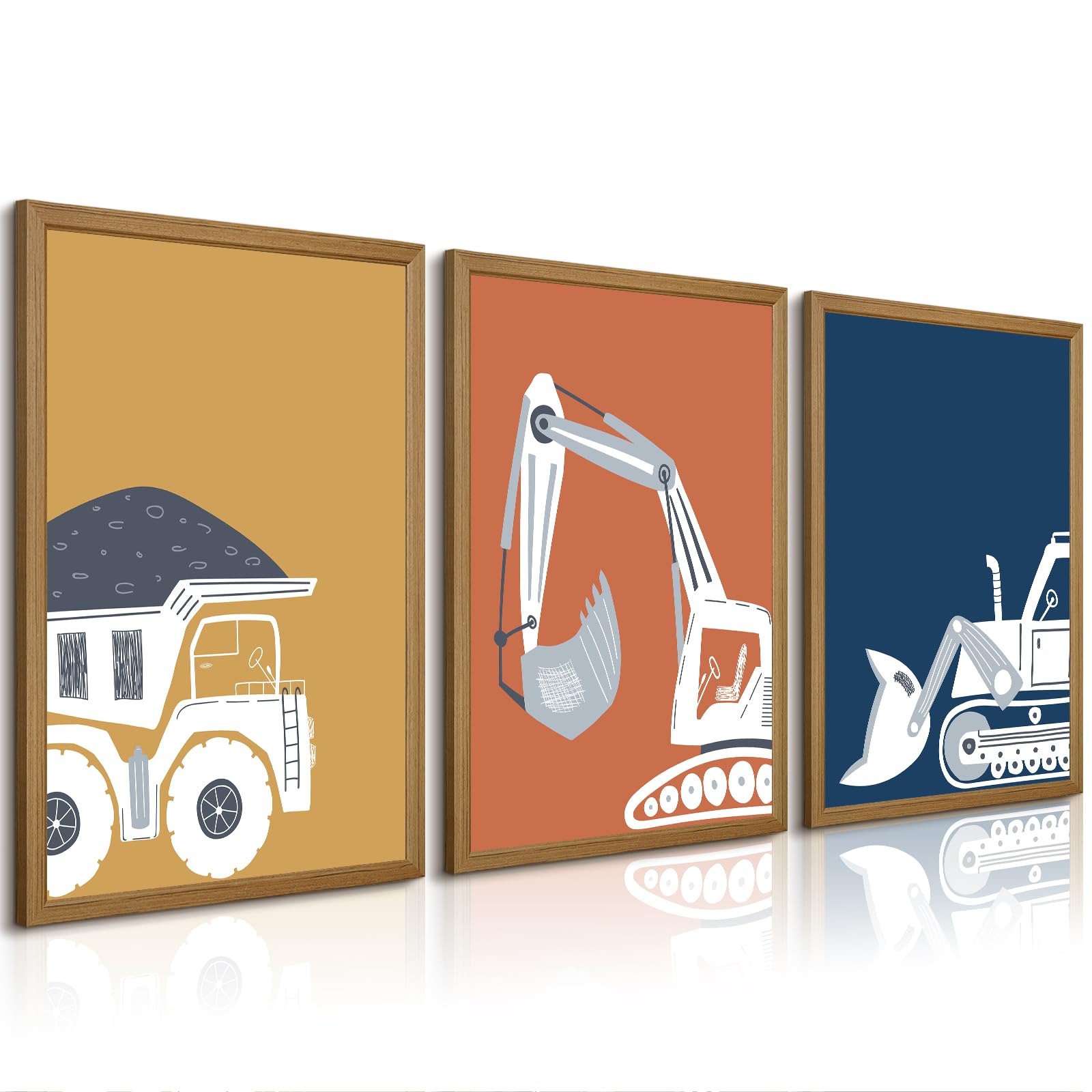 Cute Nursery Design: Watercolor construction truck vehicles themed, an adorable gift idea for boy's nursery room decor.