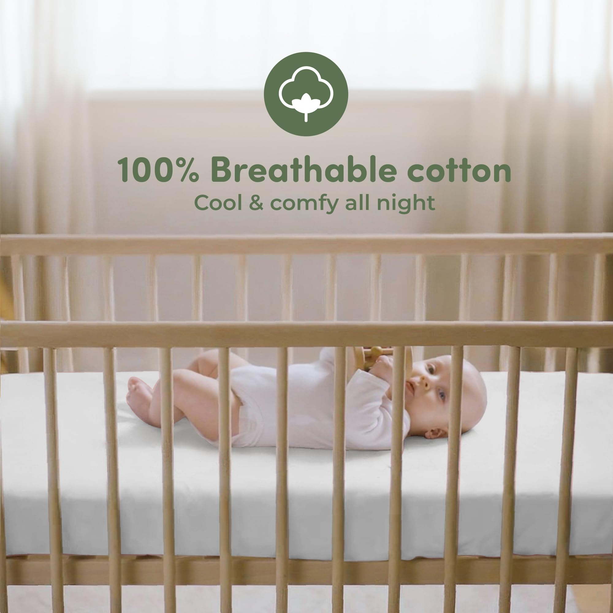 Soft & Gentle on Baby’s Skin: Crafted from 100% premium jersey cotton, these crib sheets offer a soft and breathable surface, ideal for keeping your baby comfortable during sleep. The fabric is gentle on even the most sensitive skin, making it perfect for newborns and toddlers alike.