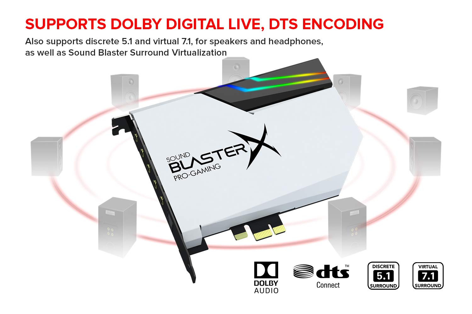 SUPPORTS DOLBY DIGITAL AND DTS – Now with support for Dolby Digital Live and DTS Encoding for even more delivery options to your external audio devices! The AE-5 Plus Pure Edition also supports 5.1 discrete and 7.1 virtual surround, as well as Sound Blaster’s Surround Virtualization technology