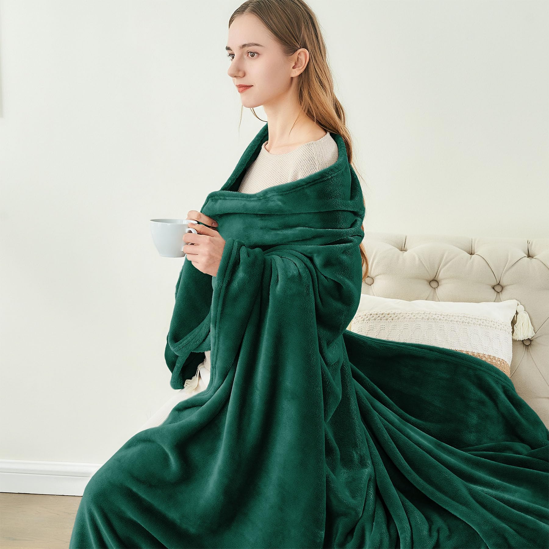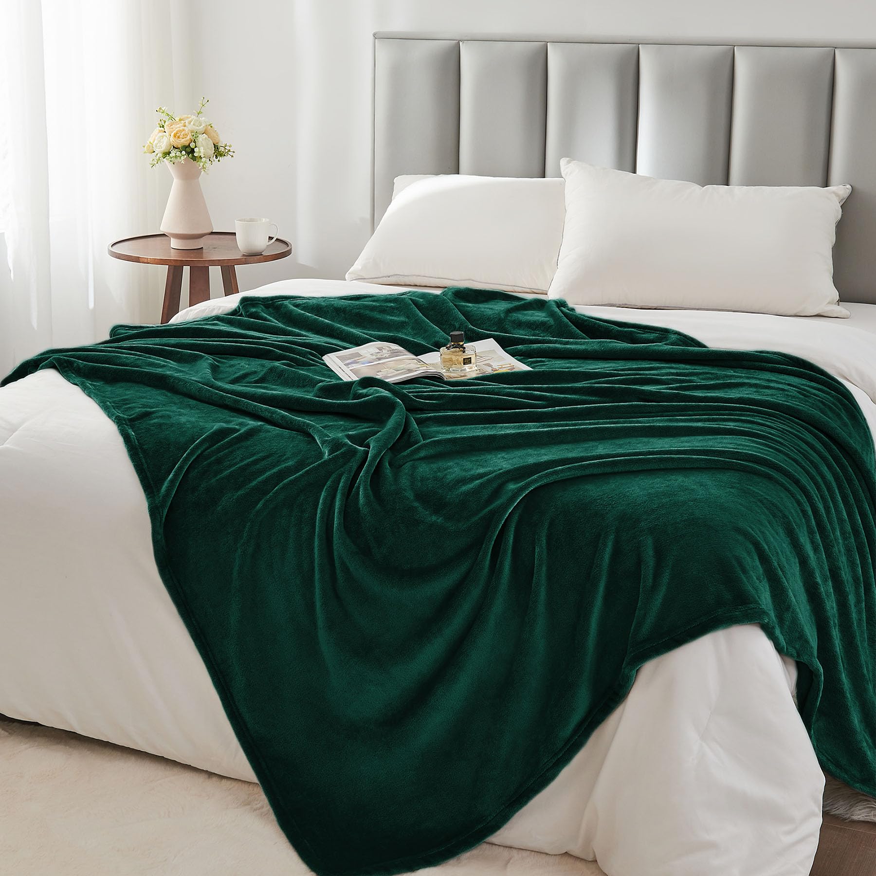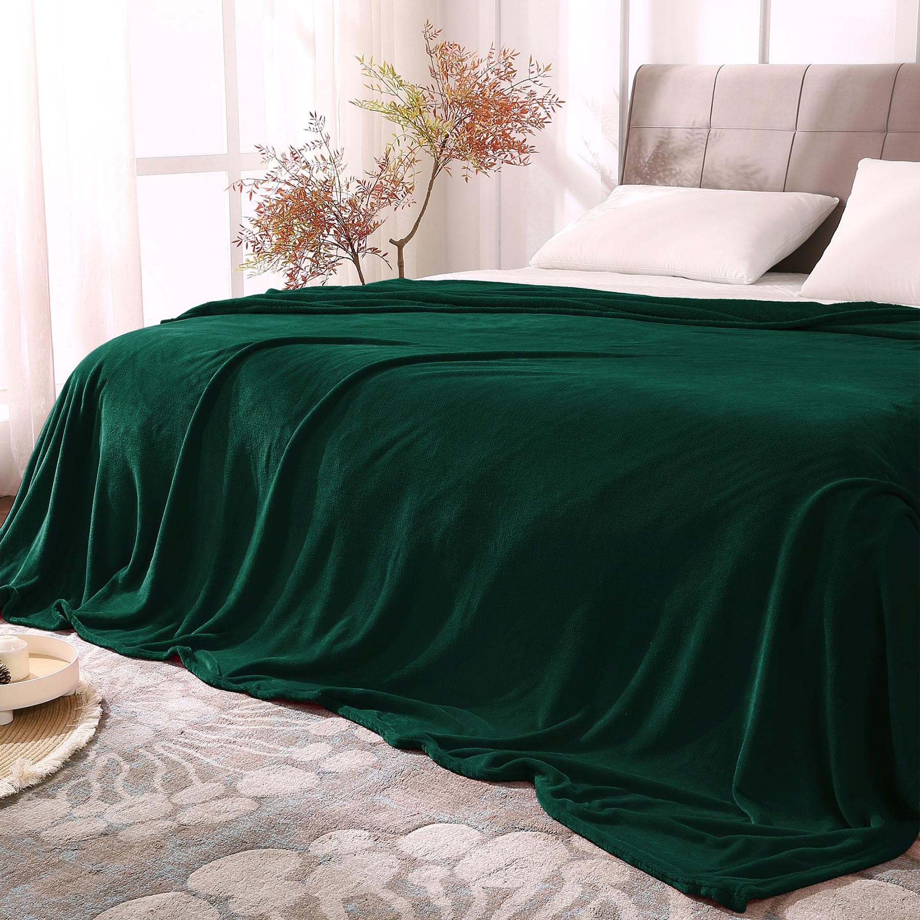 DOUBLE-SIDE FLUFFY FLEECE BLANKET: The flannel fleece fabric we choose is originally made from 100% polyester and brushed to create super softness on both sides, the throw is designed to be solid but elegant.