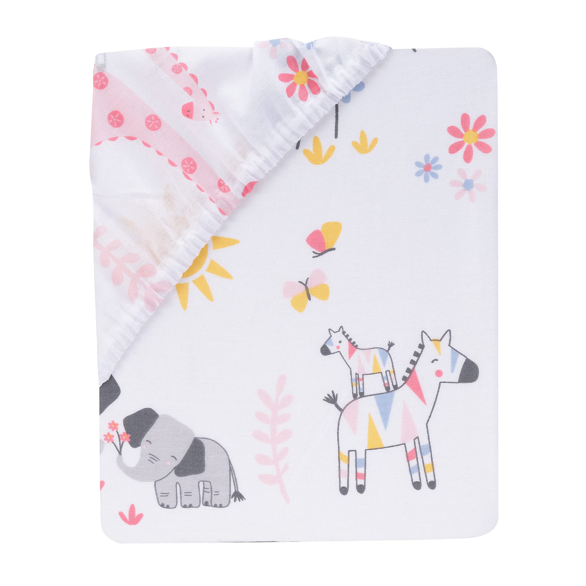 Elastic all the way around ensuring a safe and secure fit on a standard sized crib mattress measuring 28” X 52”